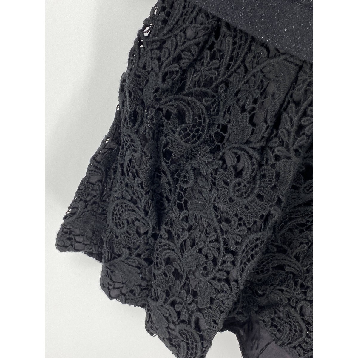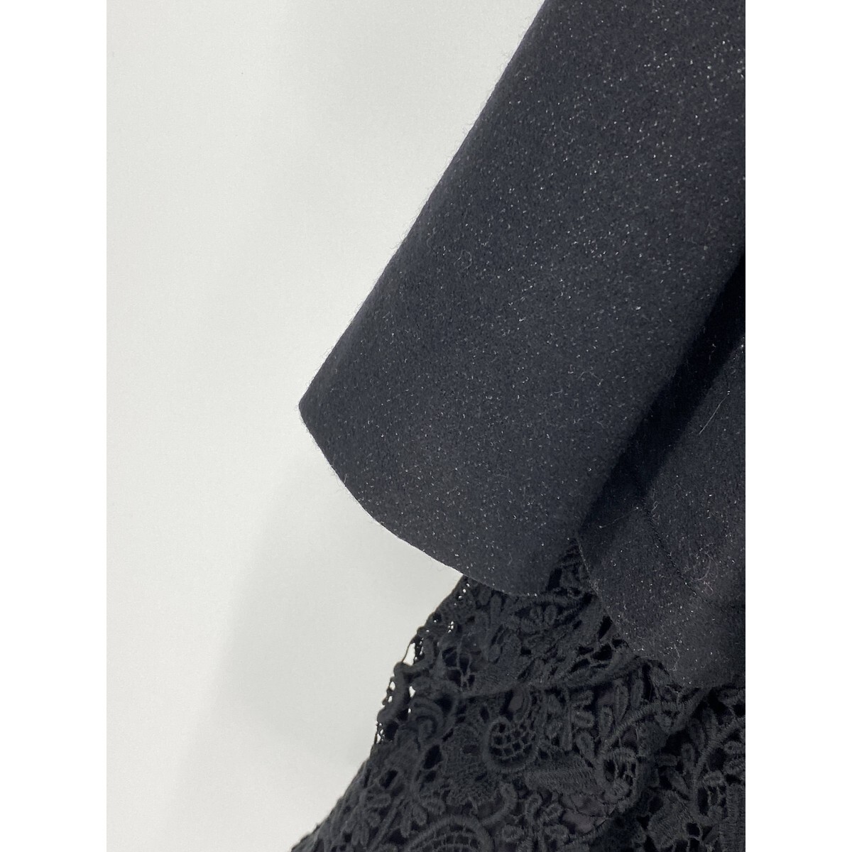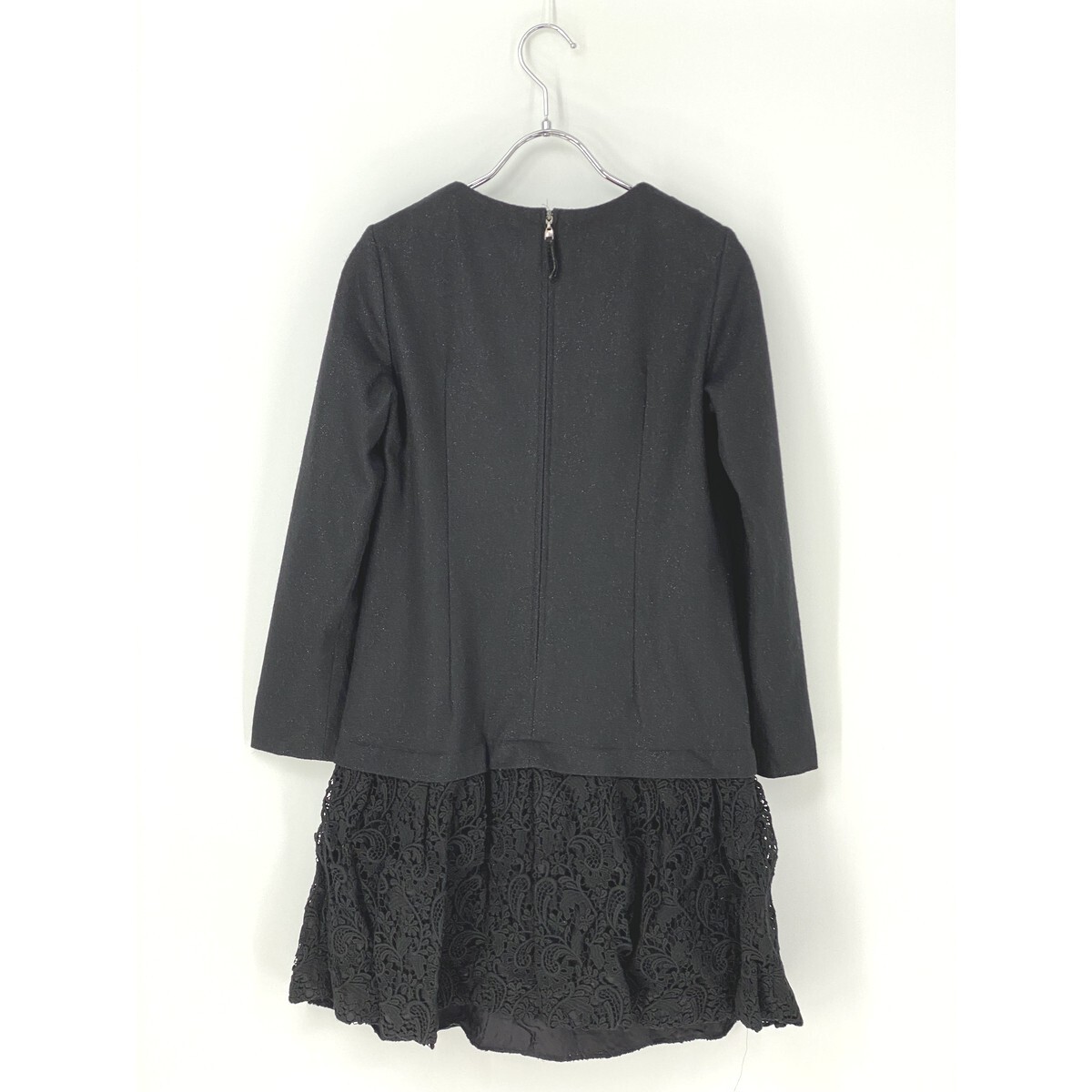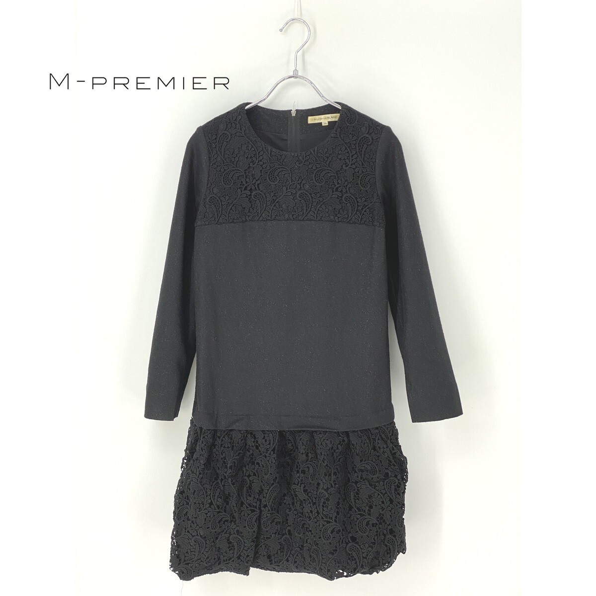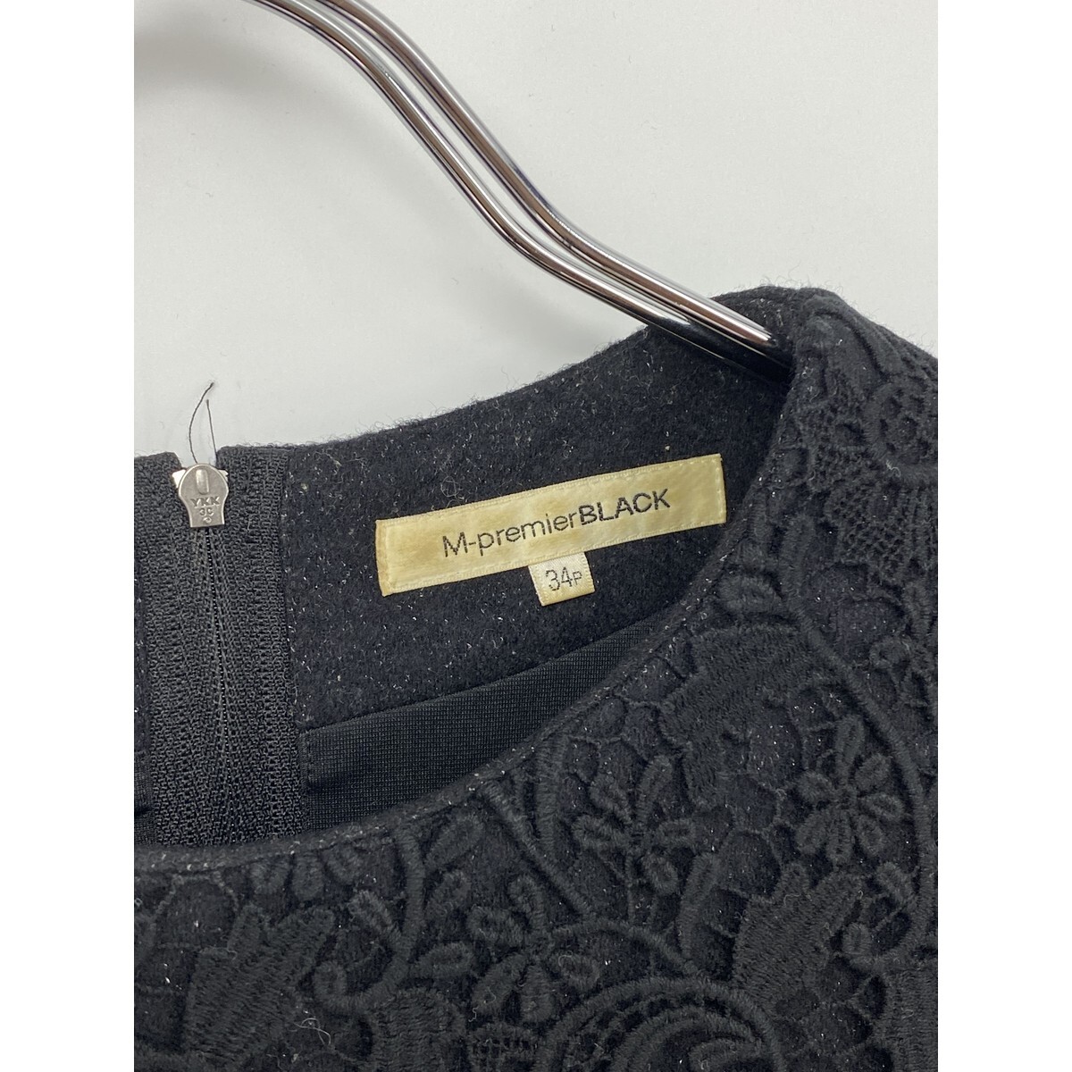 A8119/極美品 春夏 M-premier BLACK エムプルミエブラック 花柄 刺繍 ウール 丸首 長袖 ミニ ワンピース チュニック34P XS程 黒/レディース
