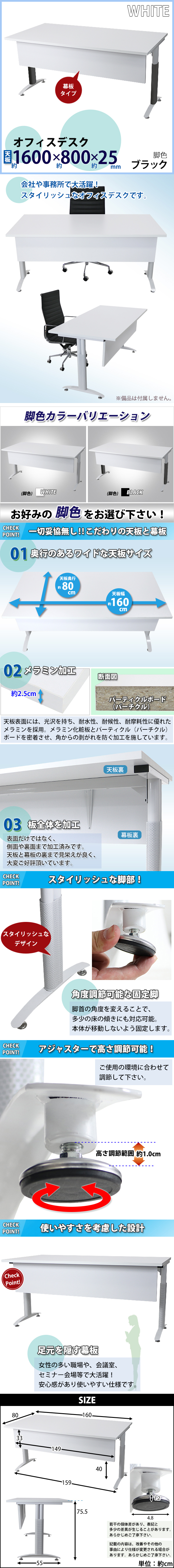 | 商品名 | 送料無料 オフィスデスク デスク 幕板付 約W160×約D80×約H75.5 約W1600×約D800×約H755 白 平机 ワークデスク 事務机 会議テーブル パソコンデスク PCデスク 長机 会議机 会議デスク 事務デスク オフィステーブル オフィス家具 会社 事務所 会議用 ホワイト deskt016160wh |