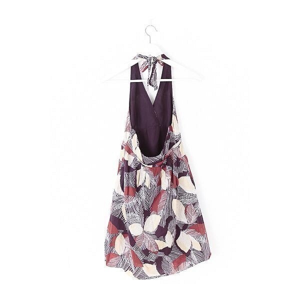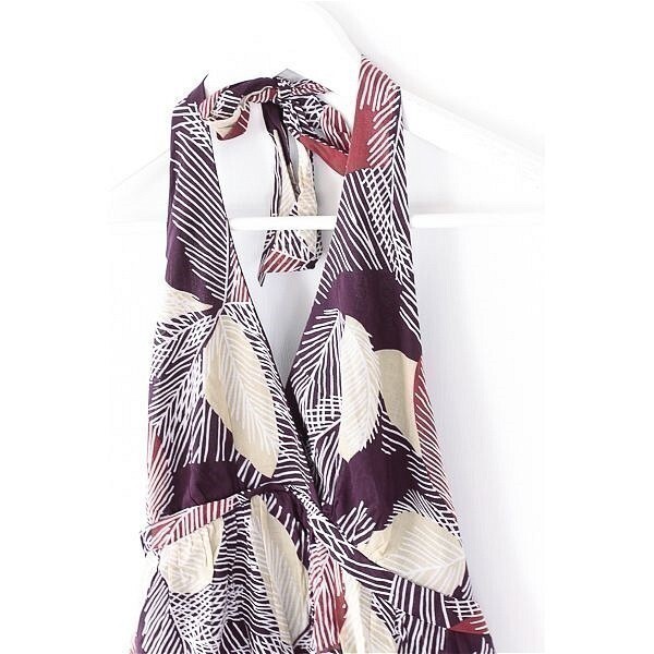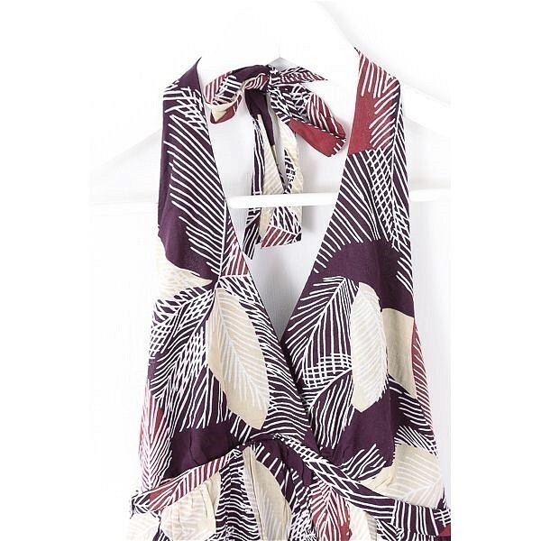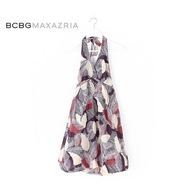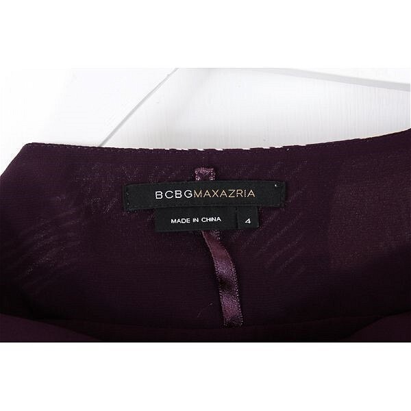 A3613/極美品 春夏 BCBG MAXAZRIA マックスアズリア コットン 総柄 ノースリーブ フレア ロング ミモレ丈 ワンピース 4 赤 紫/レディース