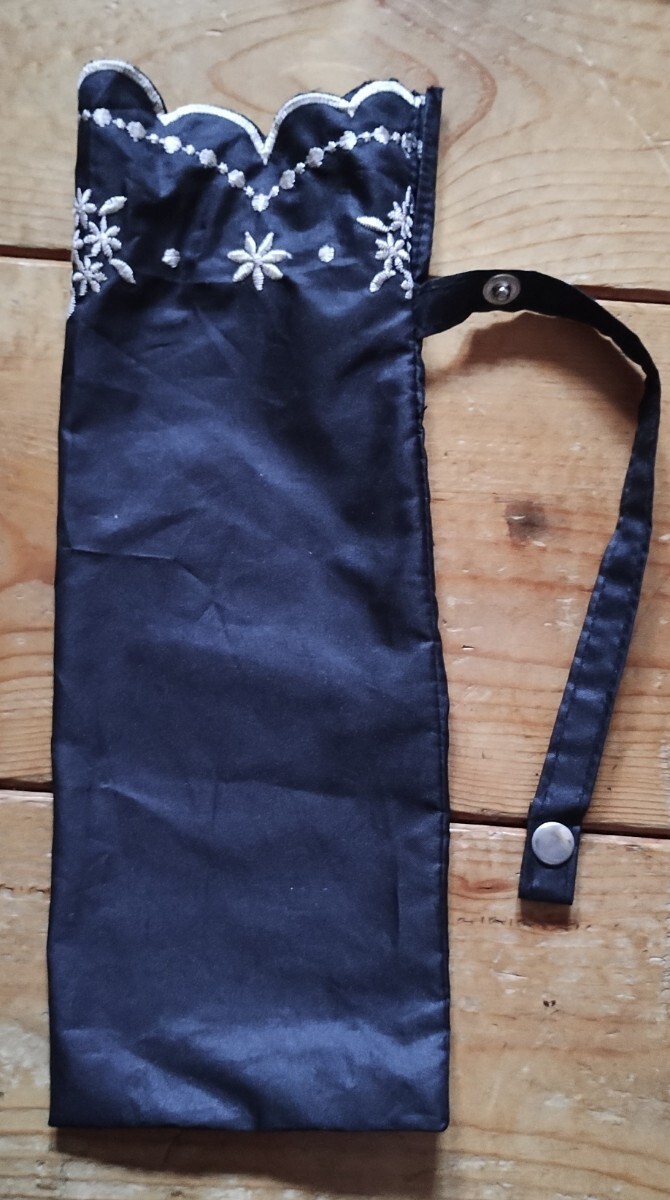 日傘袋!花柄刺繍 折りたたみ日傘 袋(黒)です。