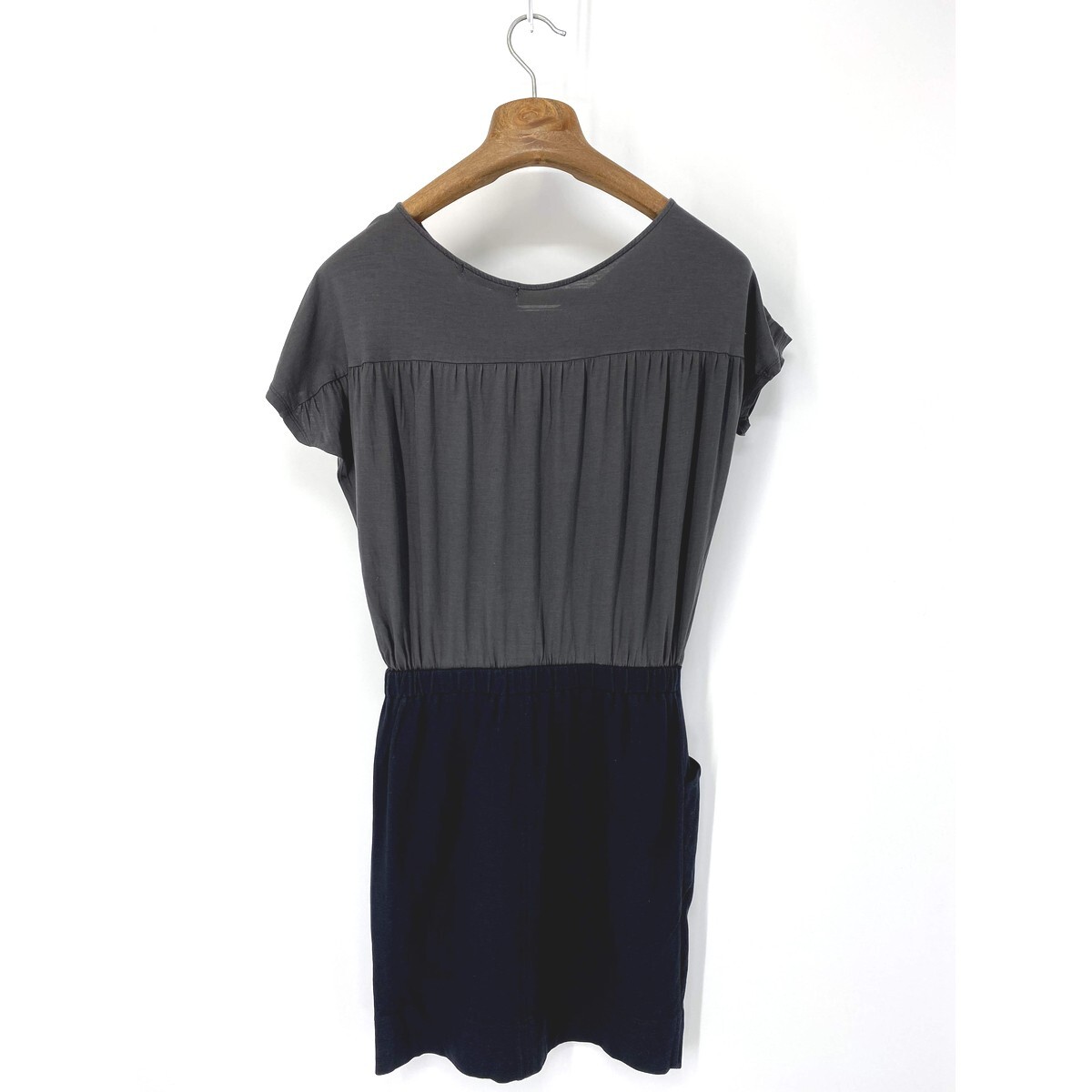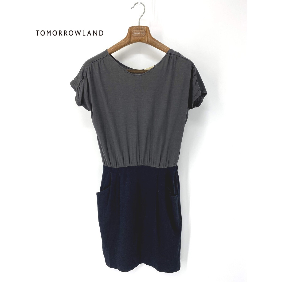 A5972/美品 春夏 薄手 DES PRES デプレ トゥモローランド リヨセル ゆったり ギャザー 半袖 膝丈 ワンピース 1 灰色 紺/日本製 レディース
