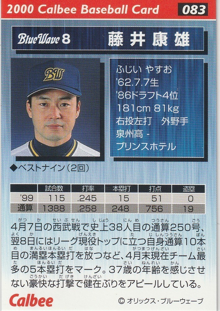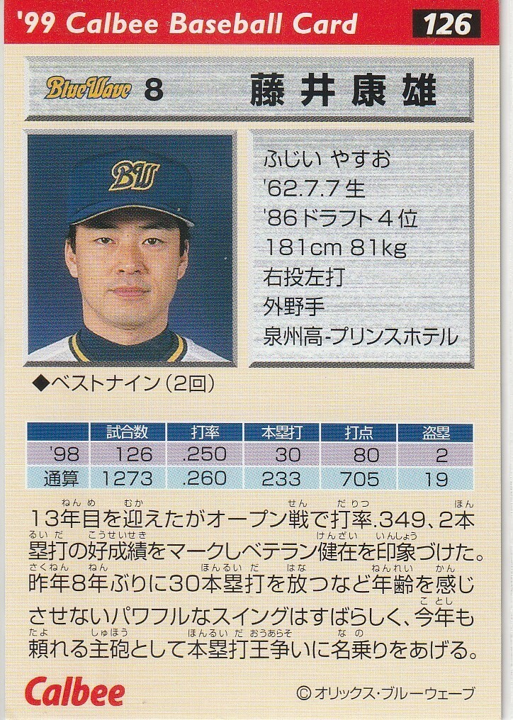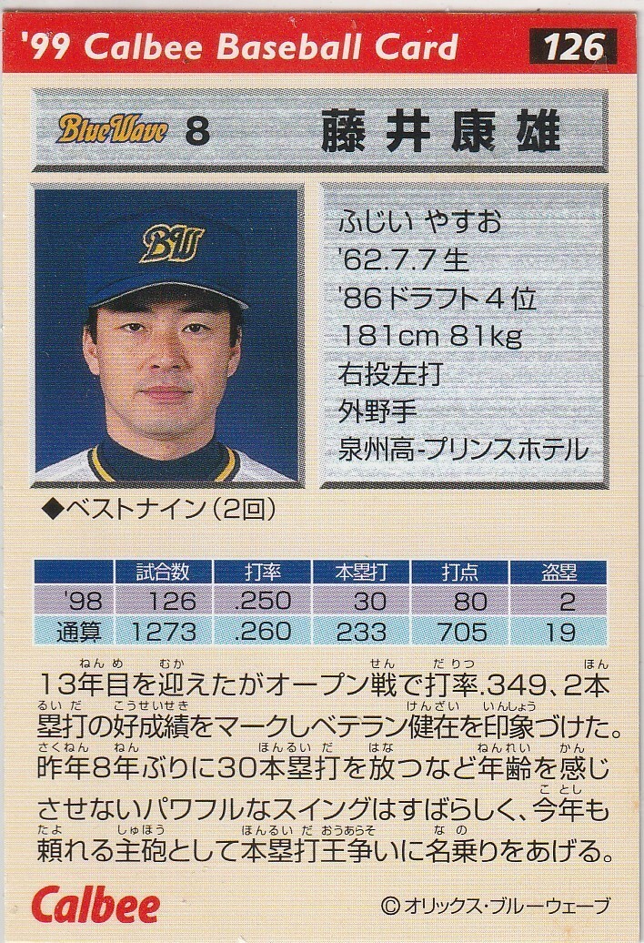 ●1999カルビー【藤井 康雄】BASEBALL CARD No.126:オリックス R