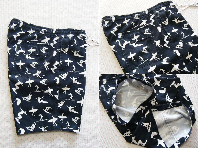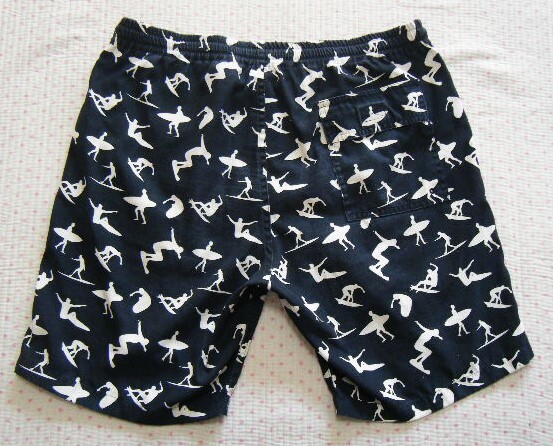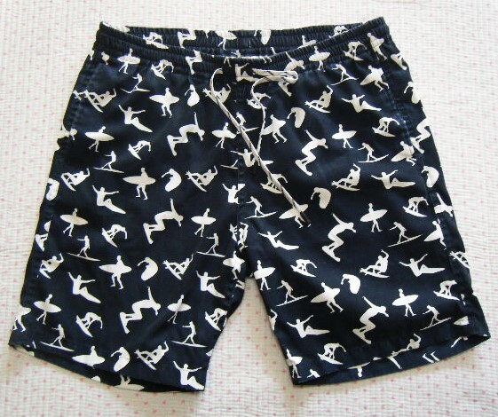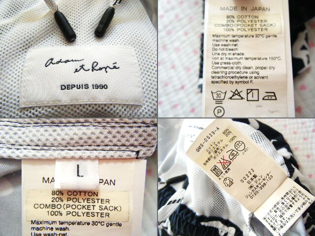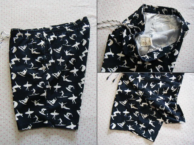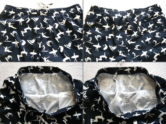 アダム エ ロペ ADAM ET ROP カジュアル用ショートパンツ・ボードショーツ・サーフパンツ 黒色/サーファー総絵柄 サイズ L @日本製