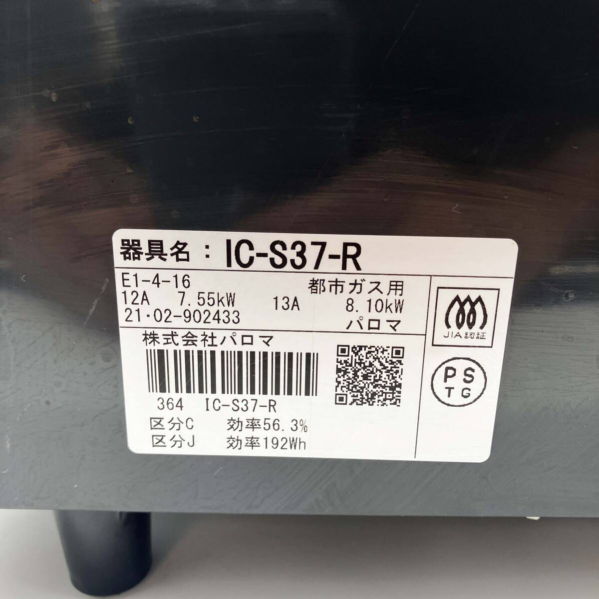 | 1109-18 ガスコンロ★パロマ★IC-S37-R★2021年製★都市ガス★右強火★水無し片面焼き★動作確認済★ガステーブル | ||