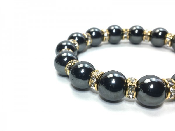 こちらは、12mm玉のヘマタイトを使用した天然石ブレスレットです。石との間にはロンデルを挟み高級感を演出しています。シンプルなデザインですのでどんなコーディネートとも合わせ易いブレスレットです。石大きさは12mm玉です。内径約18cmです。(サイズ変更の場合は取引ナビにてご連絡をお願いします。) 数に限りがございますので気になる方はお早めにどうぞ。