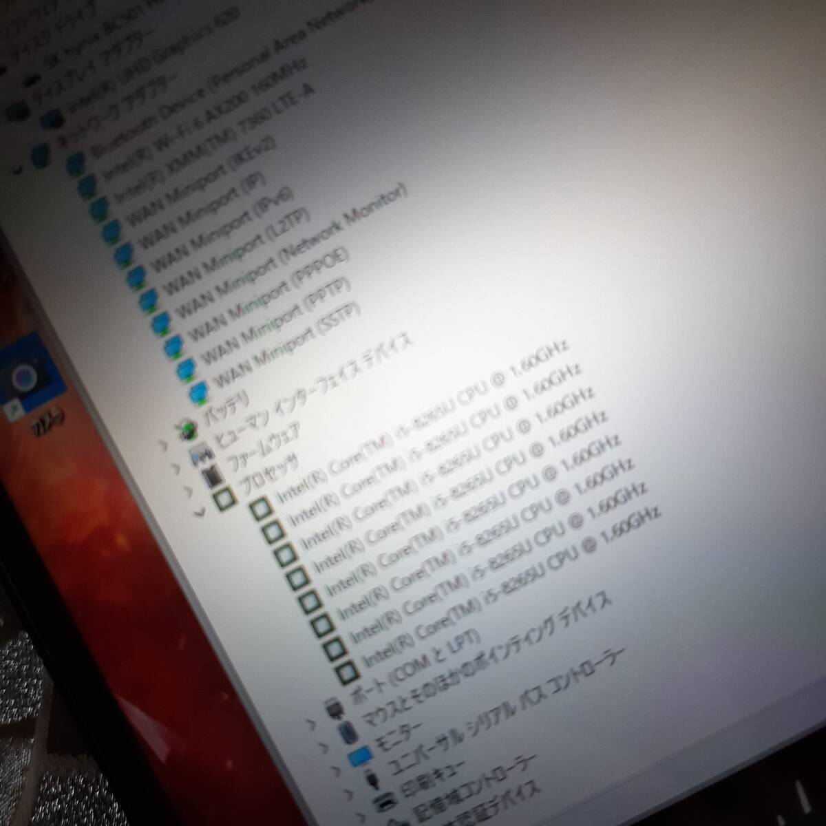 ●CPU:8世代 Intel Core i5 8265U 1.60GHz x4コア/x8スレッド(検証済)