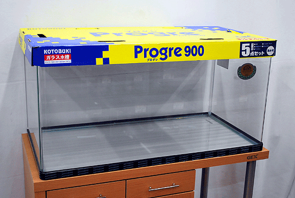 美しさを追求した、90x45x45cm前面コーナー曲げガラス水槽です。