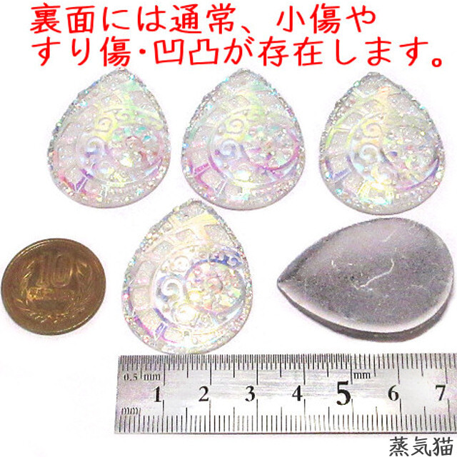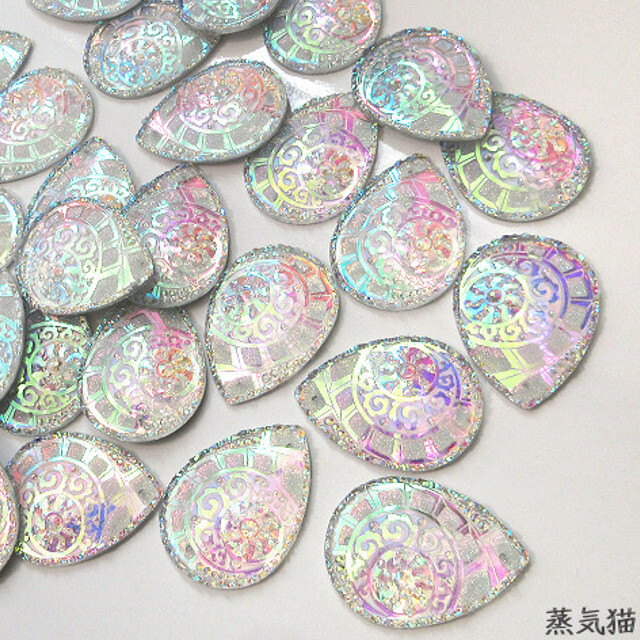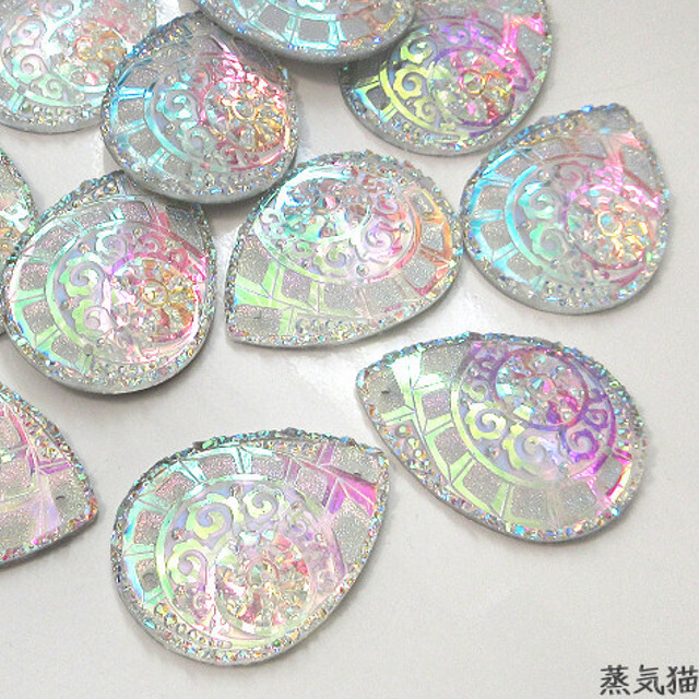 o8730 しずく型ビジュー不思議柄 39x29mm オーロラ5個【雫 虹色カボション 手作り手芸材料ハンドメイド アクセサリー素材】蒸気猫パーツ