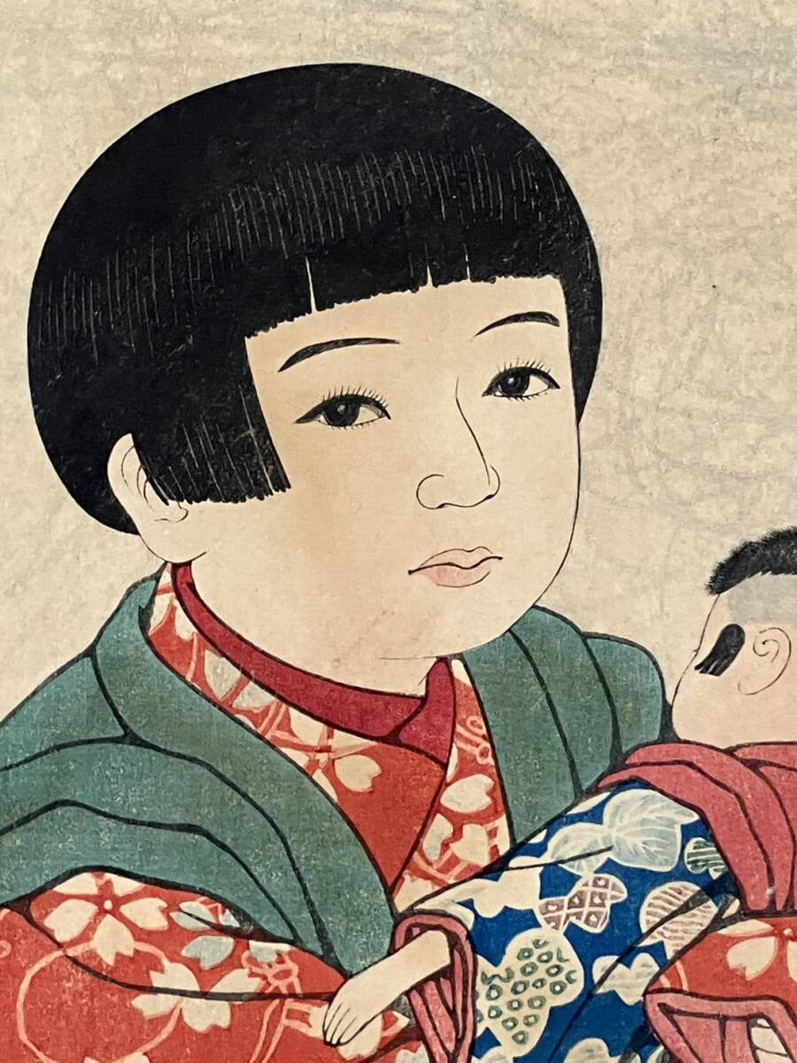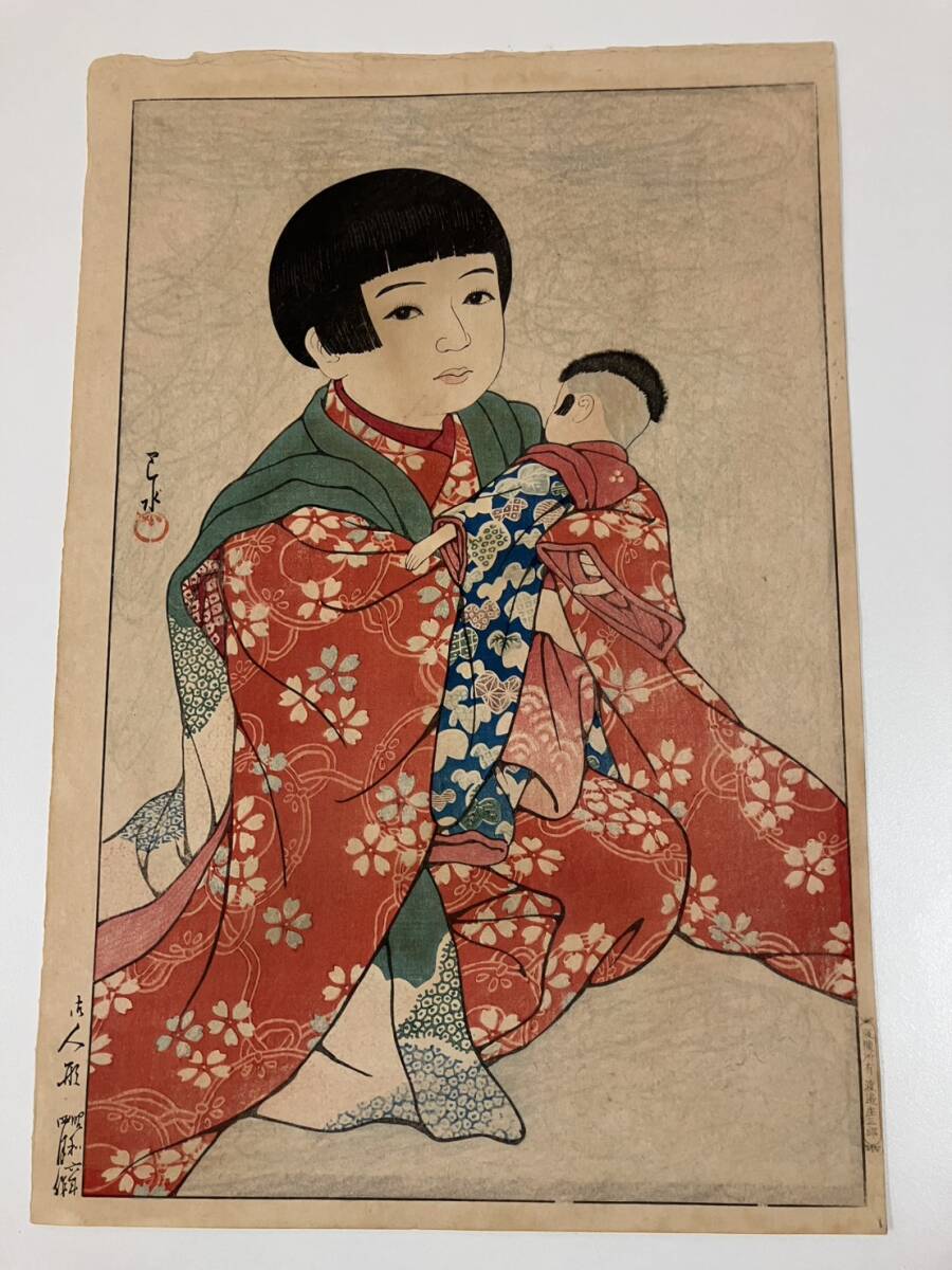 | 【真作】 川瀬巴水 『 子供十二題より 御人形 』 版画 人物画 21845 | ||