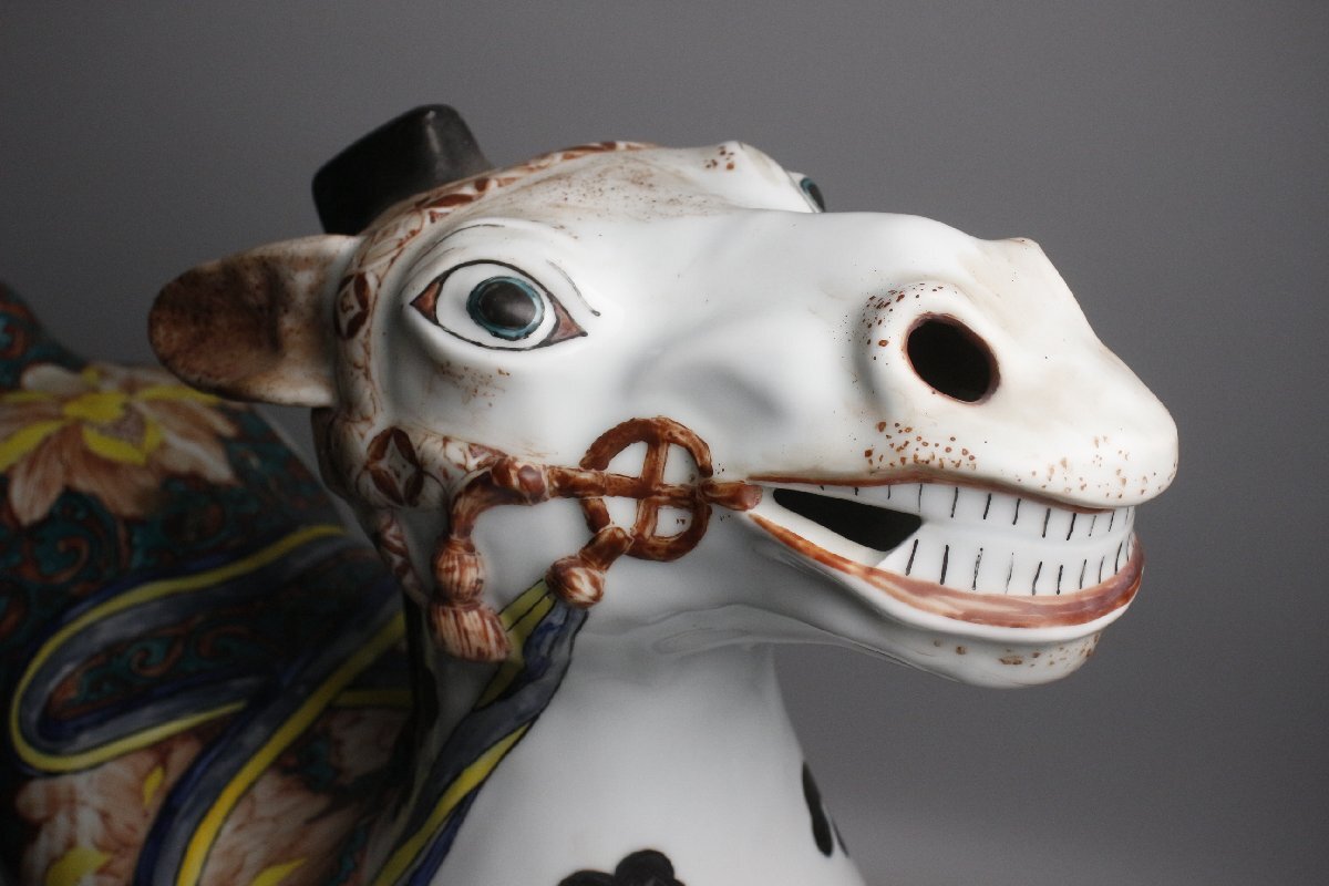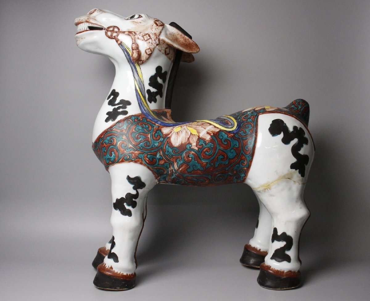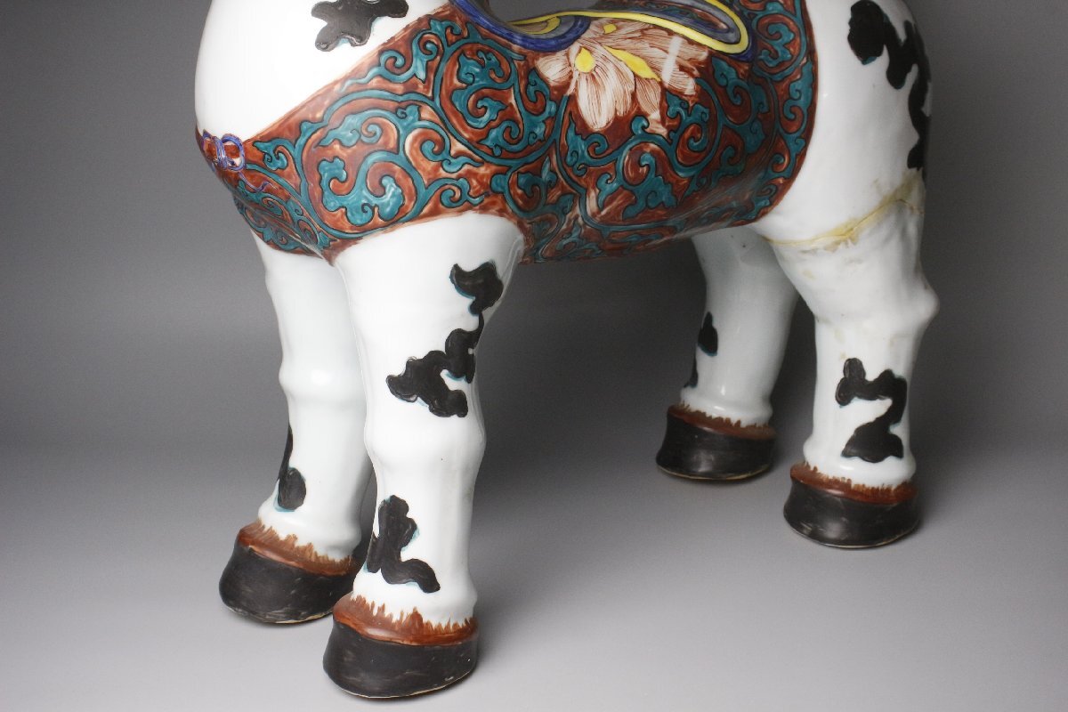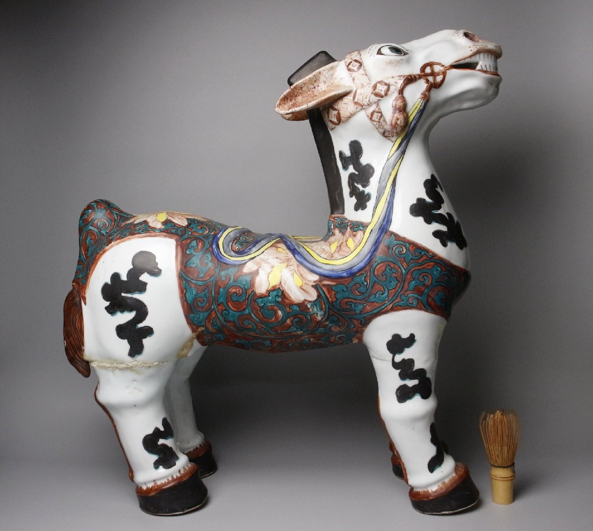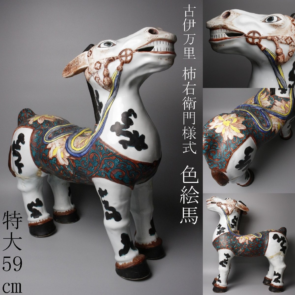 * * * 商品詳細 * * * ここでしか出逢うことのできない唯一の美をご紹介させて頂きます。 大胆で力強い筆遣い、発色良く鮮やかな色彩で彩られた 柿右衛門様式の色絵馬です。 強い生命力が伺える造形で、大きな目を見開く様や太くどっしりとした佇まい、 筋肉質な様なども見事に表現されています。 荒い息遣いが伝わって来るかのような臨場感もあり、かつ愛らしさもあります。 59㎝と大きさもあり、強い存在感と迫力を持った逸品です。 この機会に是非お求めください。 ■サイズ/横53cm×高59cm×奥行20㎝ ■状態/経年による傷み、スレ、キズ、割れ、欠け、直し、窯被がございます。 ※写真にてご確認、ご了承の上ご入札下さい。 ![]() Yahoo!かんたん決済 * * * 発送詳細 * * * 入金確認後3営業日以内に発送致します。 ※直接引き取りも可能です。 60~160サイズにつきましては 佐川急便、ゆうパックのどちらかで発送いたします。 ゆうパック発送の場合、弊社の発送日から追跡サービスに問合せ番号が反映されるまで 約1日ほどお時間がかかりますのでご了承下さい。 * * * 注意事項 * * * 運送中の破損があった場合は速やかに当社までご連絡下さい。 保険を利用するのに受取連絡後に運送会社による現場での破損状況確認が必要となります。 勝手に返送されますと保険の適用外となりますのでご注意ください。 * * * * * * お問い合わせ:082-236-8669 |