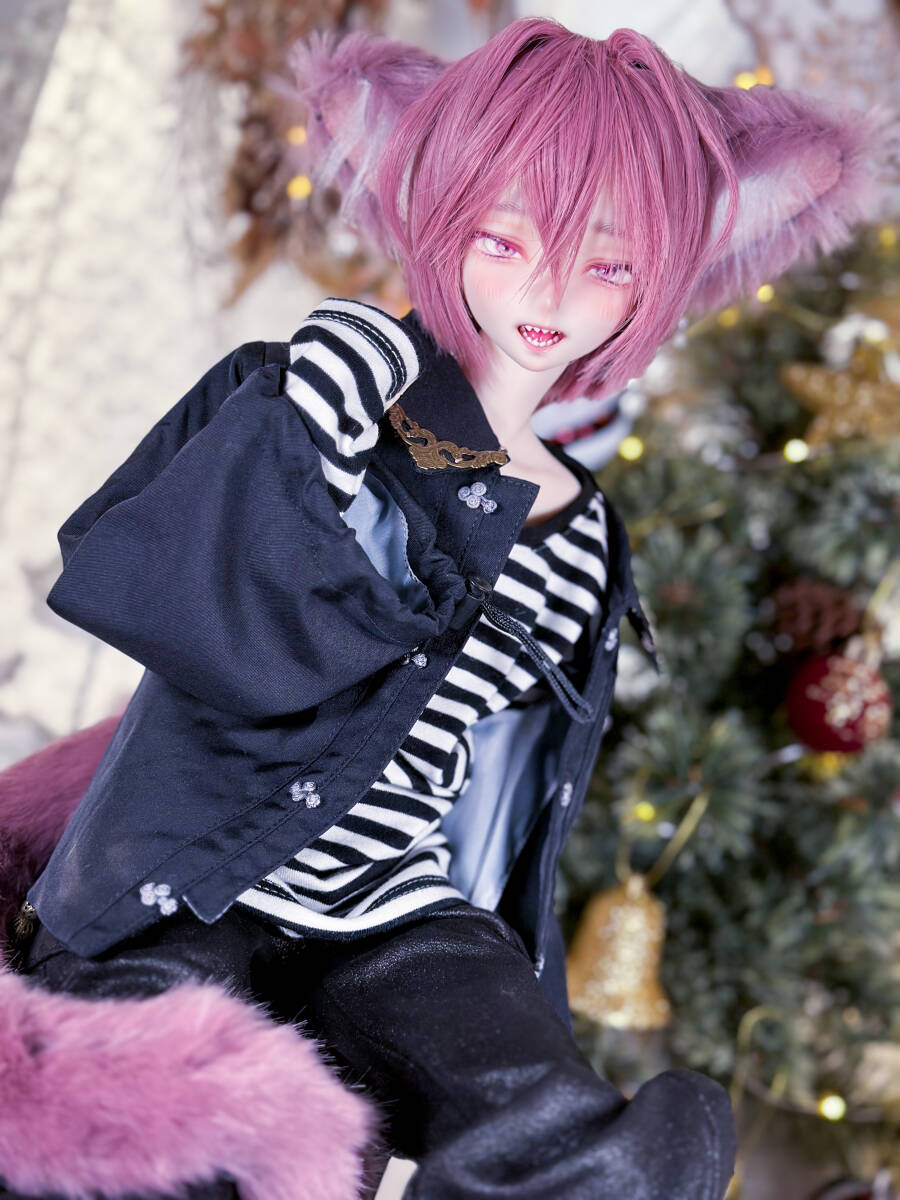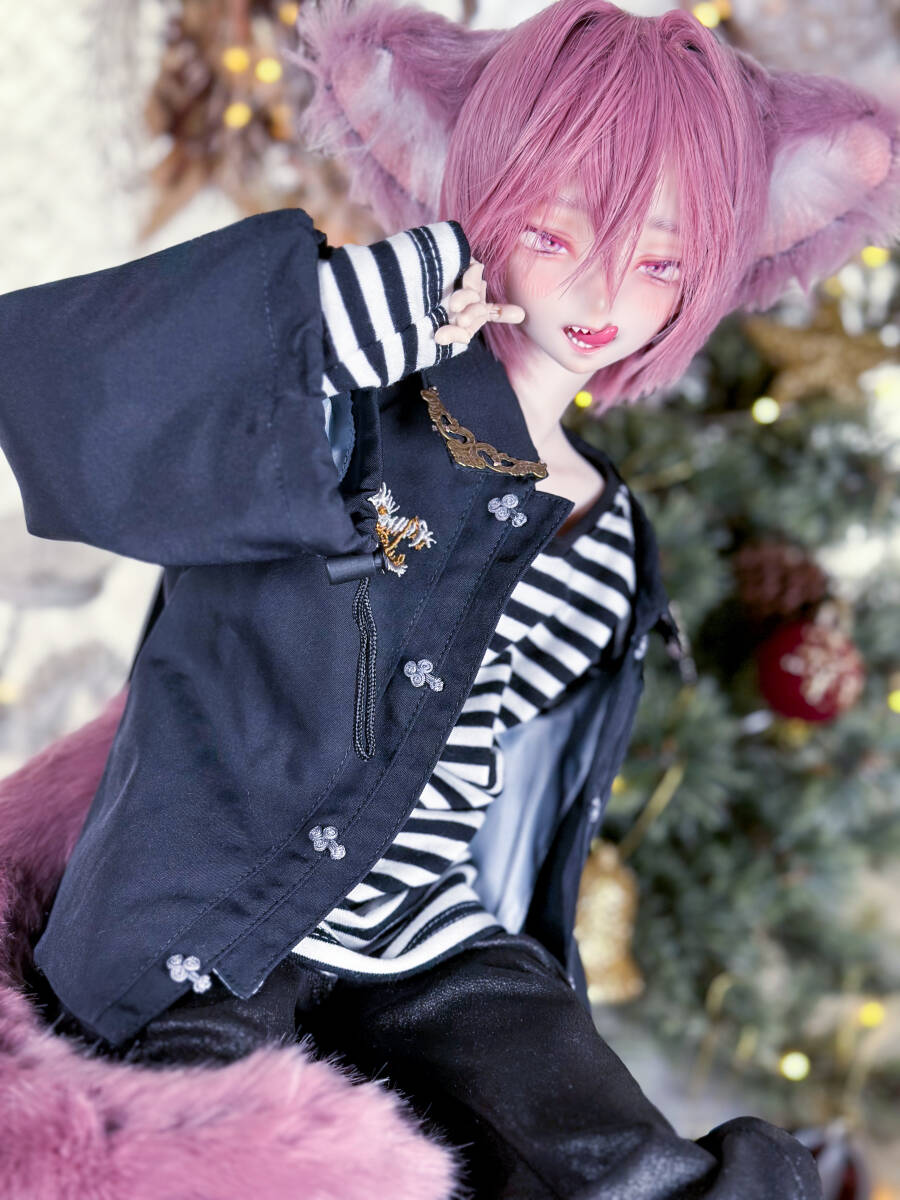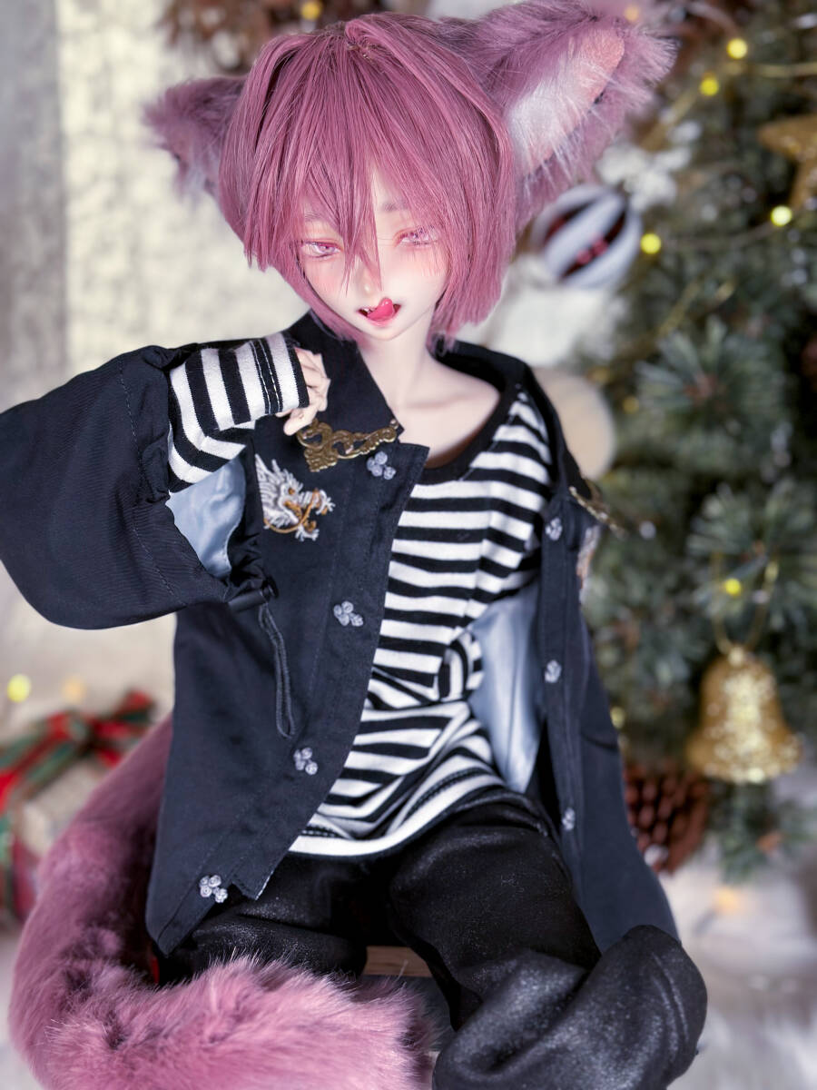完全自作です。いずれも磁石で取り付けます。大きい獣耳のお兄さんにしたくて作りました。尻尾にワイヤーが入っているので、足に絡ませたり出来ます。