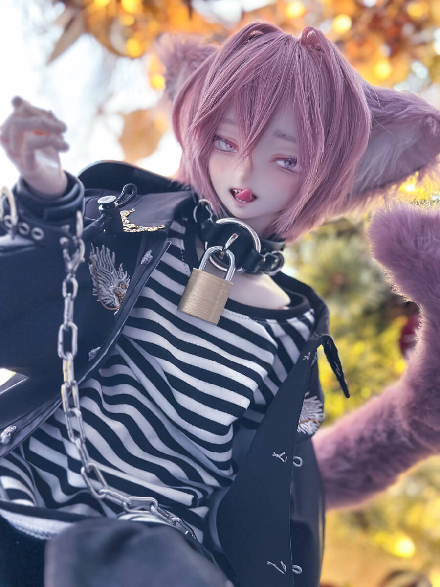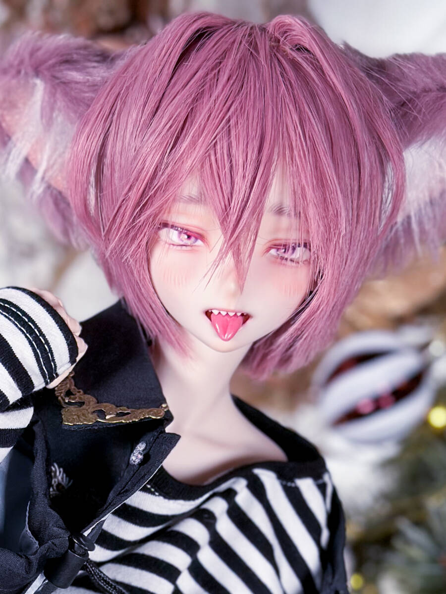 ◆Glysee KUKLA◆DDH-09 SW カスタムヘッド+手描きアイ+カスタムウィッグ+舌パーツ+自作耳&尻尾 ソフビ盛り※難あり