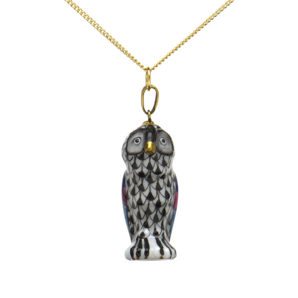 | 作品名(パターン) | VHNM(ビューヘレンド・黒色の鱗模様) (15528)ペンダントトップ(梟・フクロウ) ネックチェーン(40cm)付き | ||
