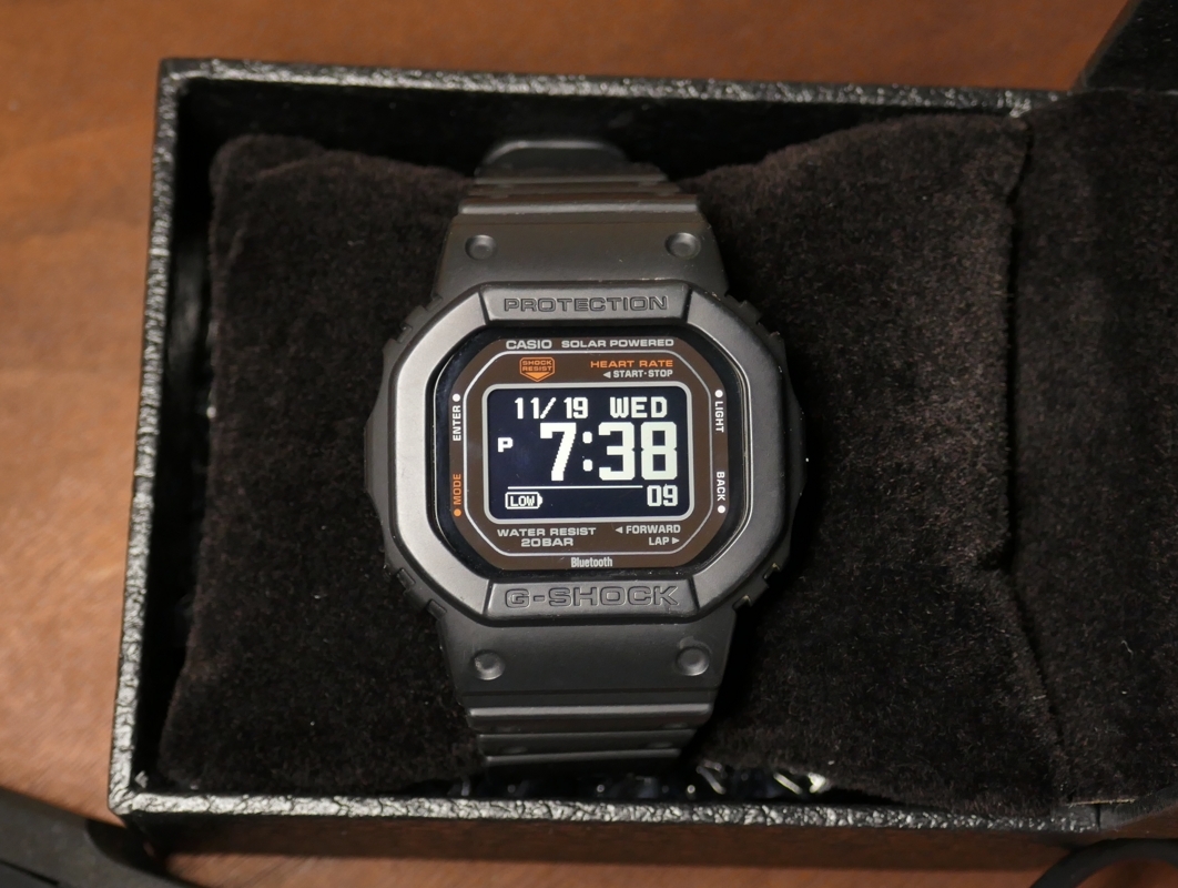 CASIO カシオ G-SHOCK G-SQUAD DW-H5600-1JR です。スマートウォッチです。昨年購入し、半年余り日常的に使用していました。買い換えのため手放します。