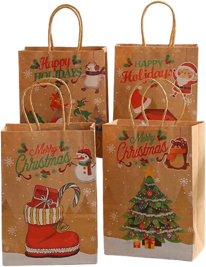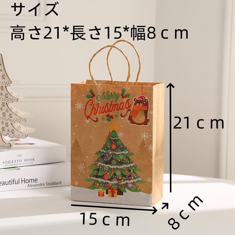 クリスマス ラッピング 袋 小 12枚入れ4種類 紙袋21cm×15cm×8cm 丸紐 厚手 ギフト 袋 ペーパーバッグ