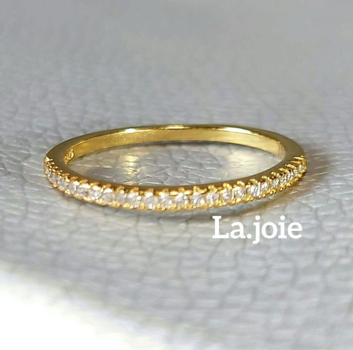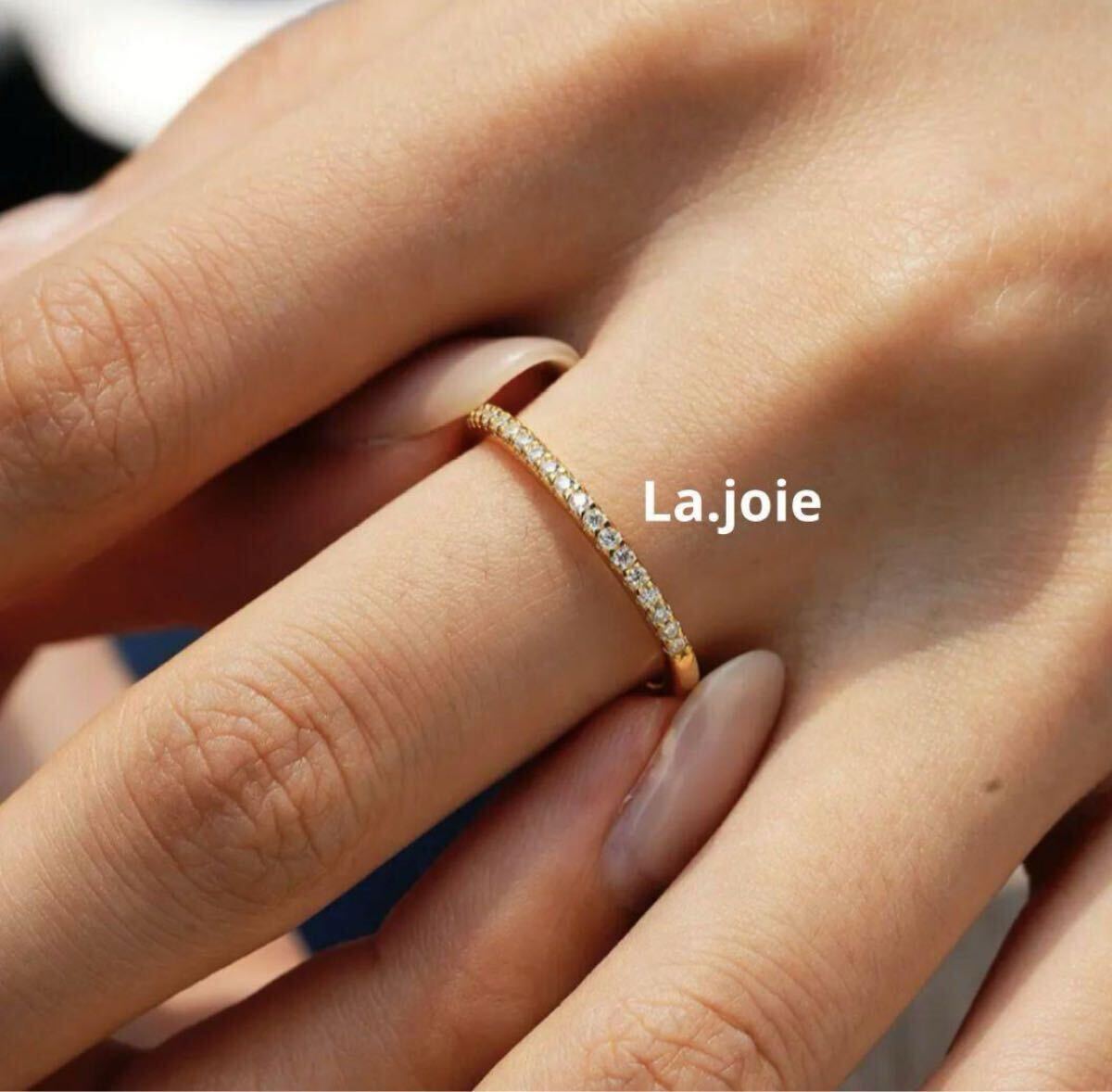 シンプルなリングにモアサナイトを敷き詰めた事で華奢なデザインでも華やかさのあるリングになります。