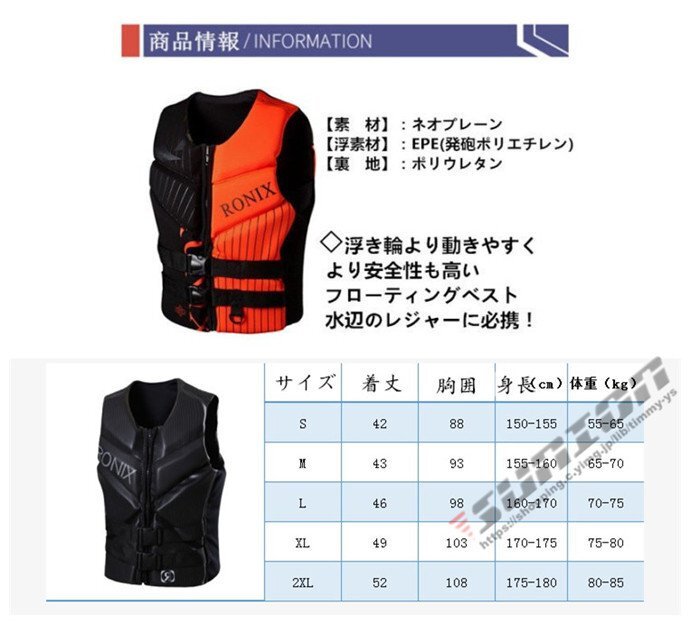 【商品情報】◇海や川、湖に出かける機会が多くなる季節、水遊びや魚釣り等に欠かせないアイテムです。◇表裏:ネオプレーン素材、浮力材:EPEフォーム、◇メッシュ生地は高い通気性を発揮して、着心地は抜群。◇ストラップは調整可能、体にフィット感UP!【御注意】 ● 検品は十分に行なっておりますが,運送中で、凹みやしわが出来てしまう場合はございます。これらに関しては、商品の品質には影響はなく良品としております。返品対象外となりますので予めご了承下さい。【保管について】▼海から上がったら、なるべく早めに洗ってください。▼熱いお湯はNG、必ず水かぬるま湯で洗ってください。▼乾燥は直射日光を避け、細いハンガーは使用しないでください。▼しっかりと乾燥したら、なるべく早めに表面へ戻してください。
