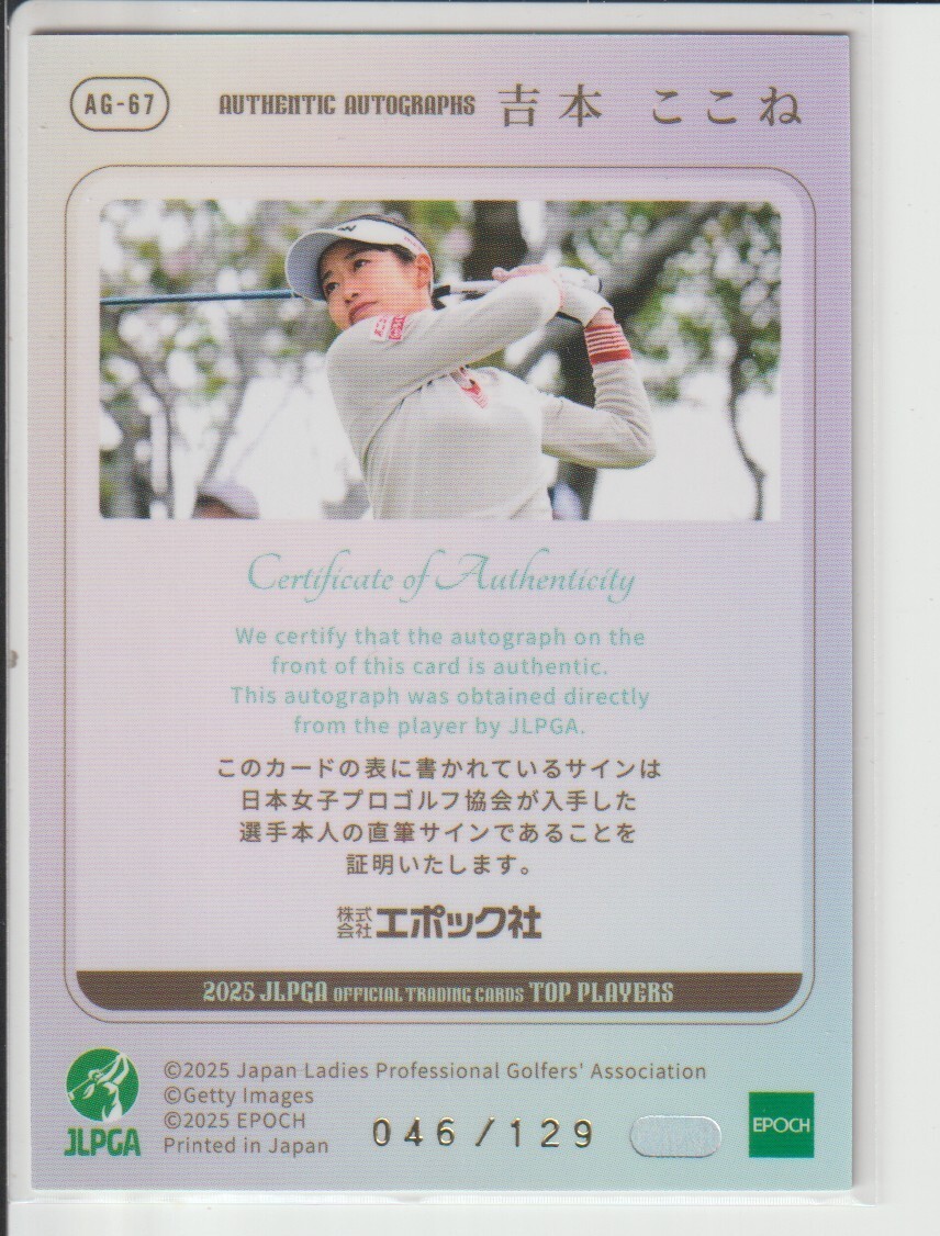 【吉本ここね】046/129 女子ゴルフ 2025 JLPGA TOP PLAYERS 直筆サインカード EPOCH