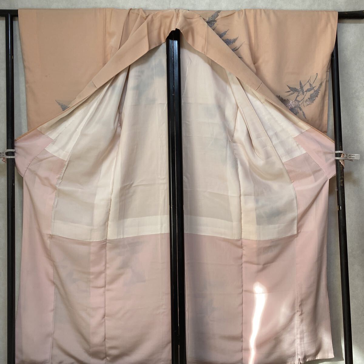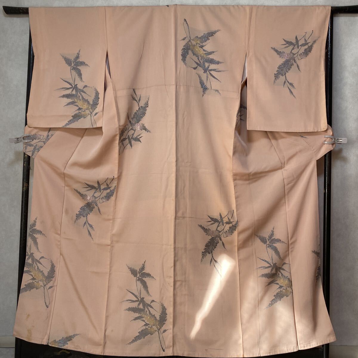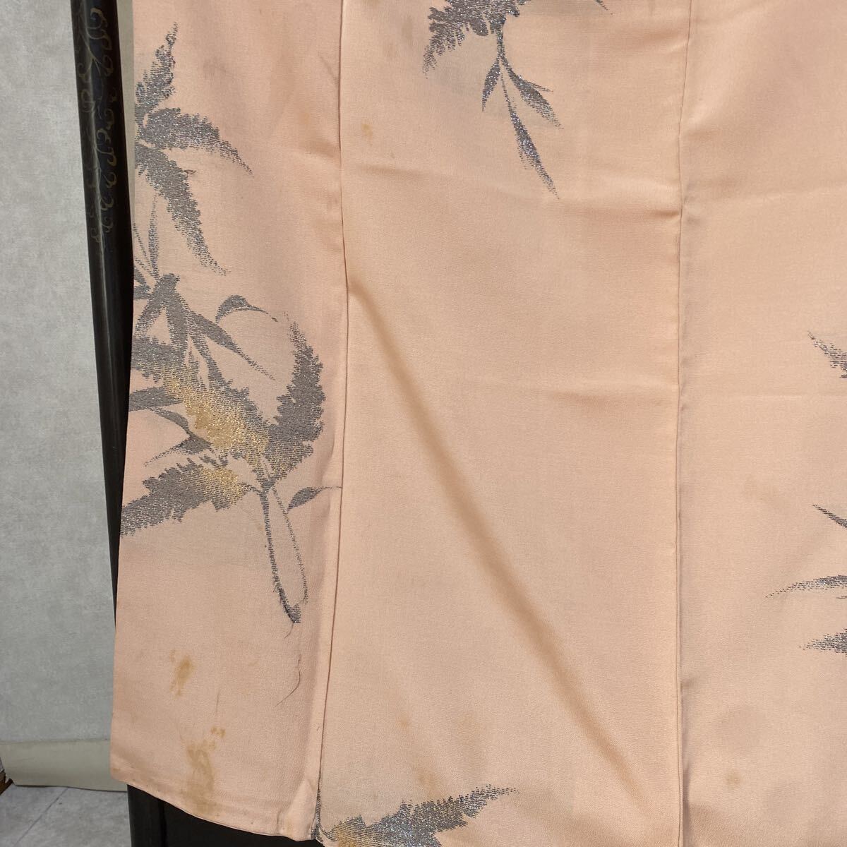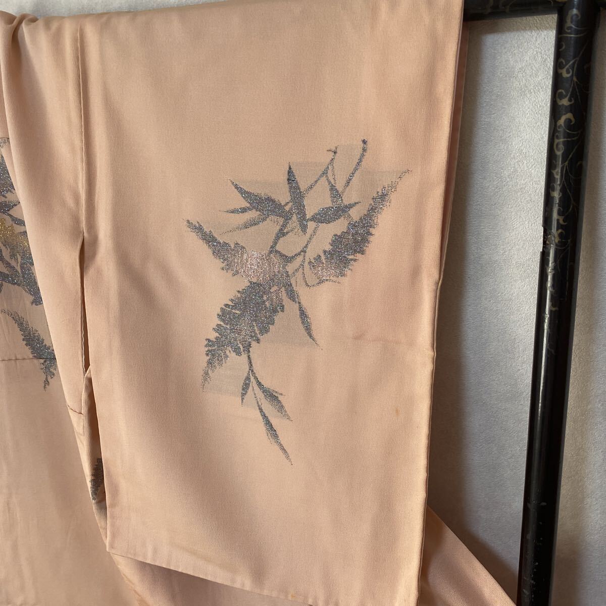 アンティーク 着物 正絹 ピンク 金銀 ラメ 植物 昭和レトロ 大正ロマン モダン 和洋折衷コーデ リメイク 25さ20-2s