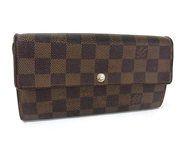 1円 LOUIS VUITTON ルイヴィトン N61734 ダミエ ポルトフォイユ サラ 二つ折り 長財布 ウォレット 小銭入れ 札入れ ブラウン系 FQ2946