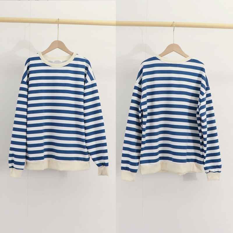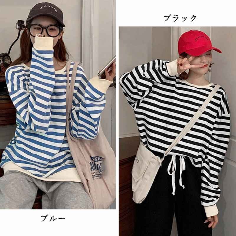 首元、袖口と裾は配色のリブでデザインのアクセントになり、単調なボーダートップスも格上げするこだわりデザイン。
