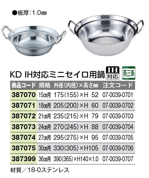 セイロ用鍋サイズ:約径235(内径215)XH79mm