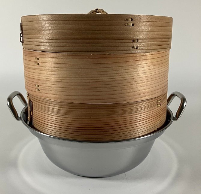 ☆木製杉セイロ径21cm2段IH対応セイロ用鍋セット(セイロ身2個・蓋1個・鍋1個)新品