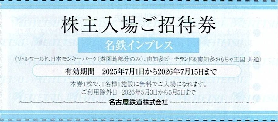 ・チケットは、名古屋鉄道株主優待券(非売品)となります。