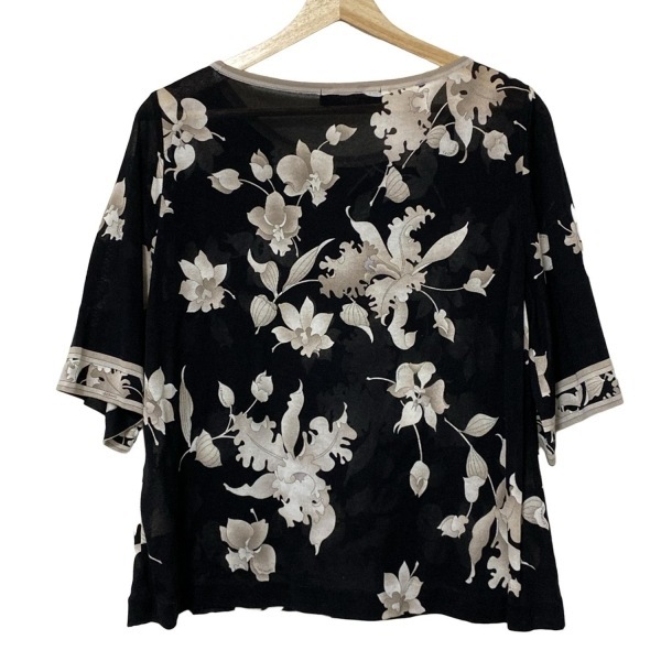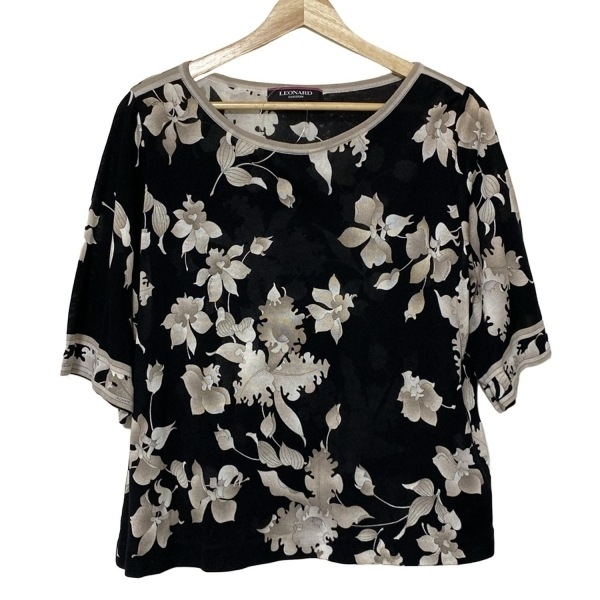レオナール LEONARD 半袖カットソー サイズ42 L - 黒×ベージュ×マルチ レディース 花柄 トップス