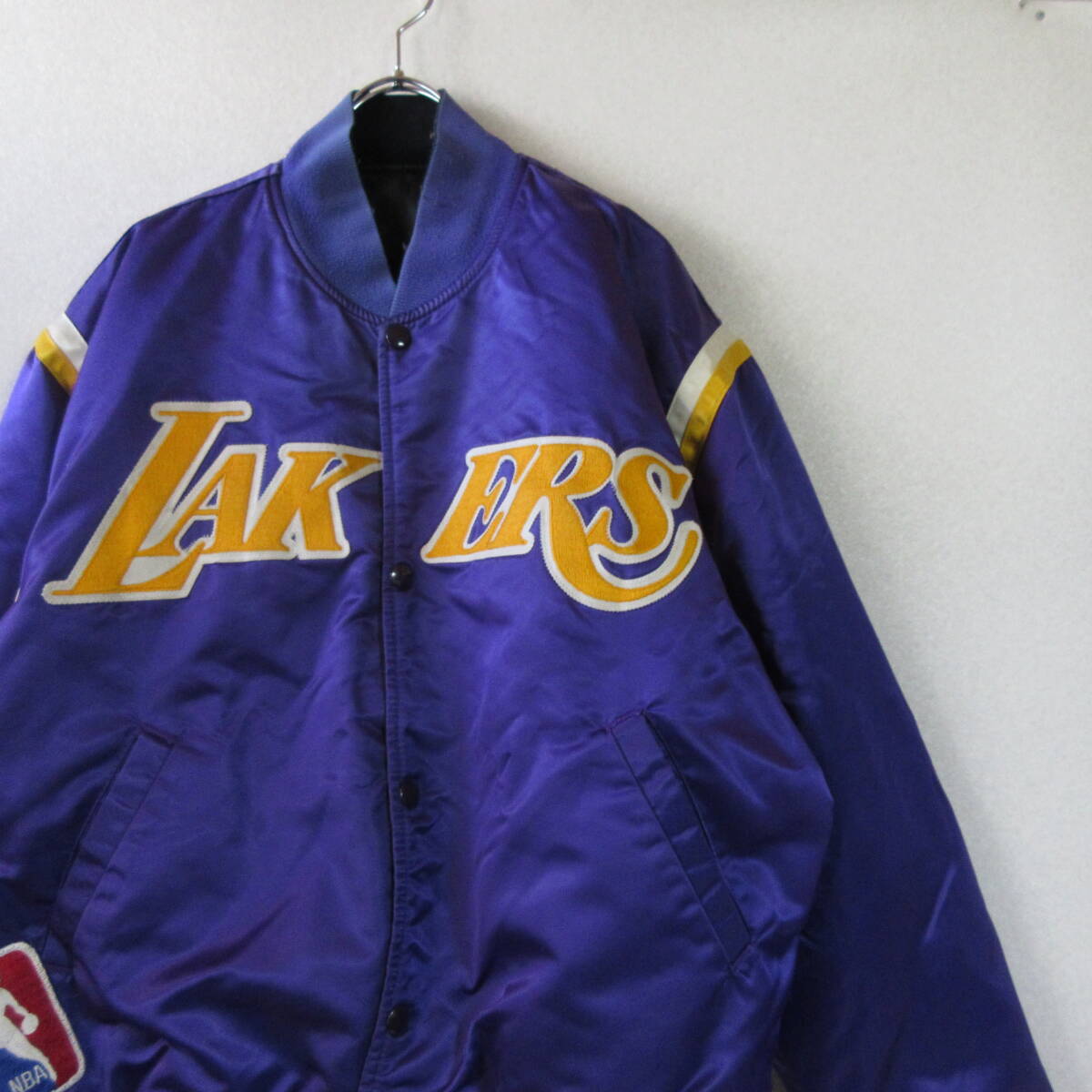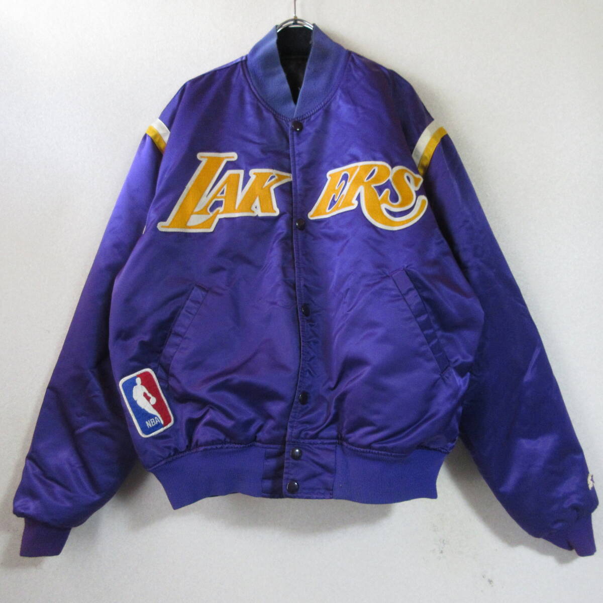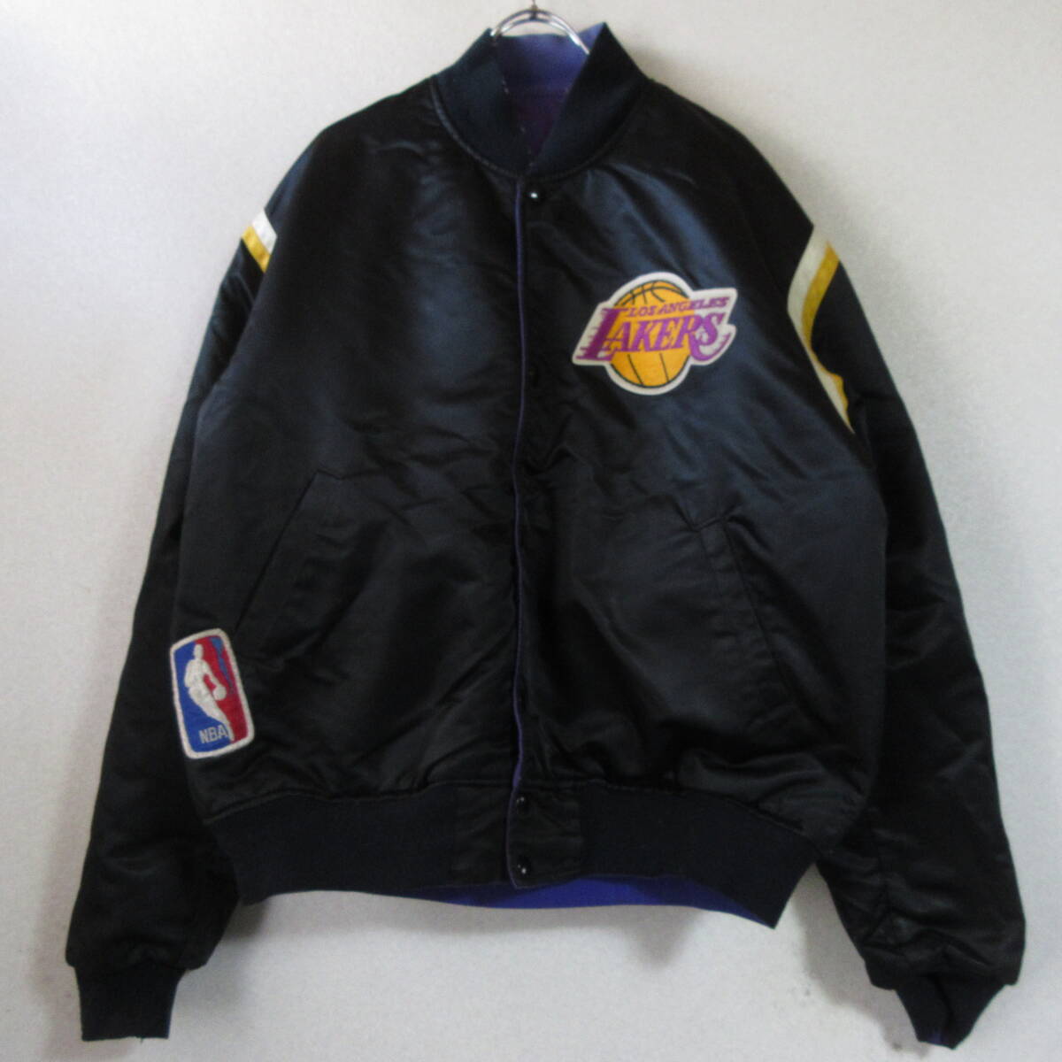 ○80s STARTER スターター◆NBA LAレイカーズ リバーシブル スタジャン 80s ヴィンテージ◆メンズ ブラック/パープル Lサイズ