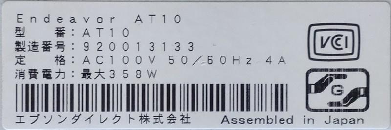 【メーカー/品名】EPSON Endeavor AT10