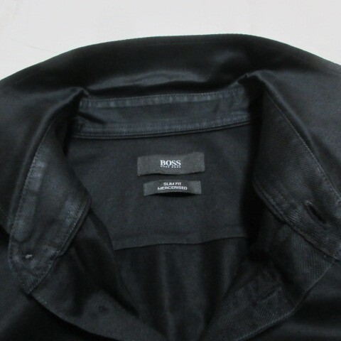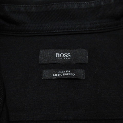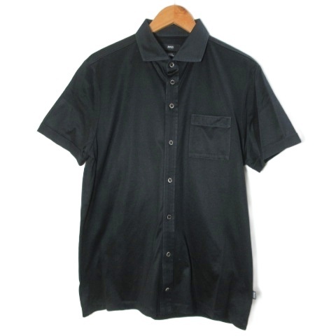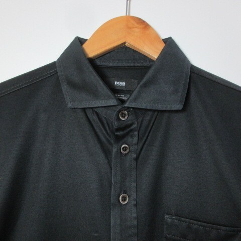 ヒューゴボス HUGO BOSS 半袖シャツ SLIM FIT MERCERISED カットソー地 ホリゾンタルカラー L 黒 ブラック /X メンズ
