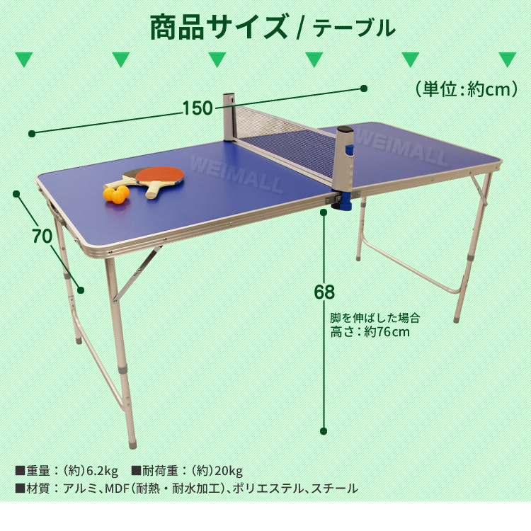 【追加症状】天板破損 折りたたみ式で持ち運び簡単! テーブルを広げてネットを付けるだけで卓球が楽しめます。 ラケットとボールも付属しているので、届いたその日から卓球ができます。 また、持ち運びしやすく、アウトドアやご自宅でも簡単に遊ぶことができます。 【商品仕様】 内容: 折りたたみ卓球台 ネット ラケット×2 ピンポン球×3 カラー:ブルー サイズ ・使用時:(約)幅150cm×奥行70cm×高さ60/68cm ・収納時:(約)幅75cm×奥行70cm×厚6.5cm 重量:(約)6.2kg ※折りたたみ卓球台 耐荷重:(約)20kg ※訳あり品のため、即日発送できない場合があります。 ※出荷前検品により、発送が困難であると判断した場合は、ご注文をキャンセルさせていただく場合がございます。 【訳あり品の注意事項】※必ずご確認ください ・お安く提供しておりますのでご了承の上、ご入札をお願いします。 ・落札個数分の送料が必要となります。 ・通常の商品とは異なり、保証期間はございません。 ・組み立てに必要なボルトナット類(組立パーツ)が不足している場合は、お客様でご用意お願いいたします。 ・細かなことが気になる神経質な方は、ご入札はお控えください。 ・訳あり部分の整備、修繕や調整が可能な方のご入札をお待ちしております。 ・訳あり品はその性質上、再入荷のお約束ができません。 ・販売価格は随時見直しを行い、事前の予告なく変更いたします。 ・本商品を使用した際に発生したトラブル、事故につきまして、当社は一切の責任を負いかねます。 ・人身および物損事故のないように十分ご注意ください。 ・商品は、モニターによって色合いが異なって見える場合があります。 ノークレーム・ノーリターンでお願いいたします。 ・訳あり品ですので、いかなる場合もノークレーム/ノーリターンでお願いします。 |
