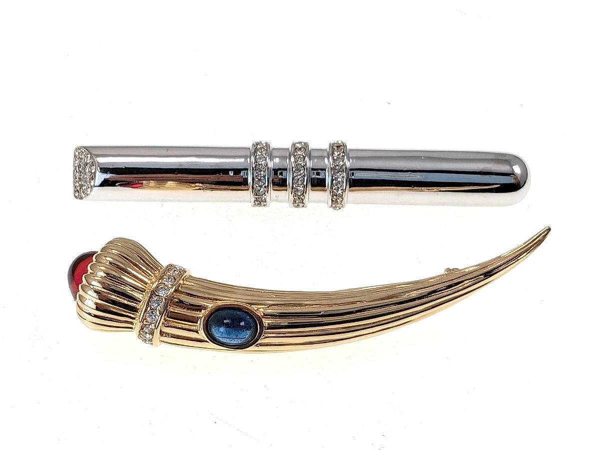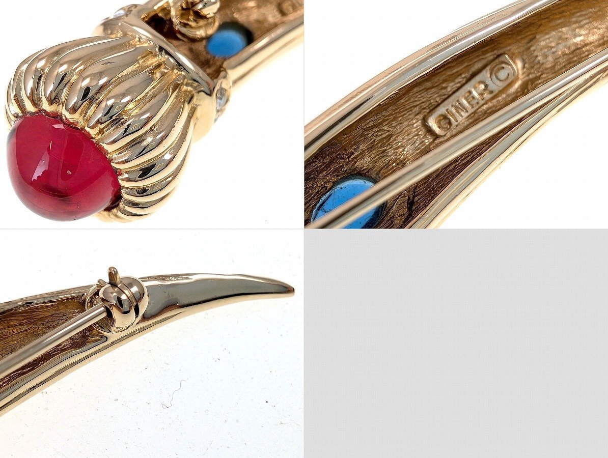 「CINER」の刻印が入ったブローチ2点をまとめたものです。 いずれも中古品で若干の使用感があり、各所に小さなスレがあります。 肉眼で見る限り、ストーンの目立つ割れや欠けはみられません。 金属のくすみ、黒ずみがあります。 写真や記載にない不具合があるかもしれませんが、現状渡しにてご容赦ください。 あくまで中古品となります。 完全な状態をお求めの方、細かい点が気になる方はご入札をお控えください。 ノークレーム・ノーリターンでお願いいたします。 |