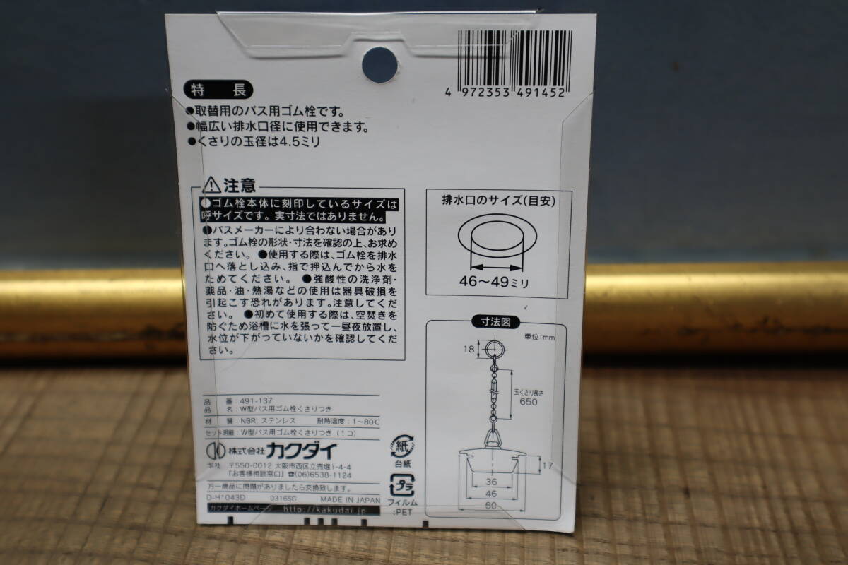 カクダイ W型バス用ゴム栓くさりつき 排水口径46~49ミリ用 491-137 10個セット 即決価格 |
