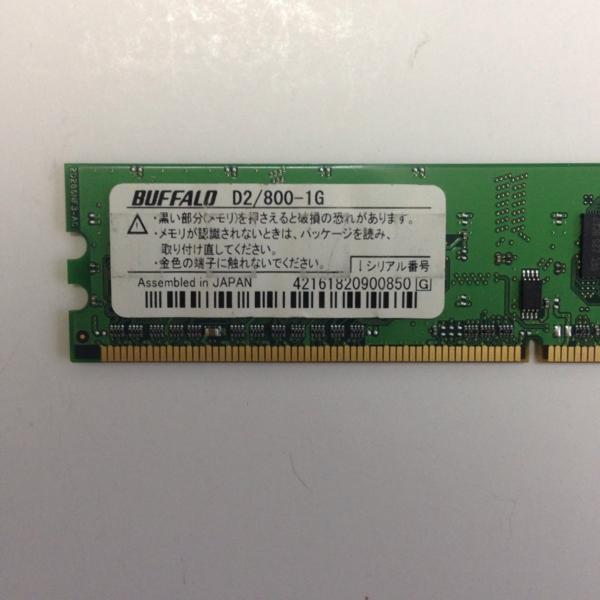 | ★商品説明★ | 取引トラブルを防ぐ為、必ずこちらへアクセスして下さい。 写真は使い回しとなりますので、実際にお送りするものはラベル・チップ等が異なる場合も御座います。 ■仕様一覧 デスクトップPC用メモリー ※メーカー:Buffalo ※状態:中古品 ※容量:1GB ※メモリータイプ:DDR2-800 ※チップ規格:PC2-6400 ※数量:1枚 ご注意:こちらの商品は動作確認済となりますが、パソコンとの相性は保証致しませんので、よく適用機種をご確認の上、ご購入をご検討下さい。 相性保証の商品につきましては、メールにてお気軽にお問い合わせ下さい。 | |