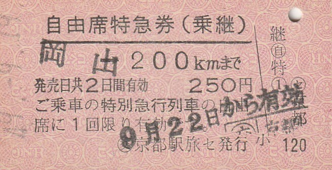 V231.山陽本線 岡山⇒200キロ 49.9.19【0147】〇交 京都駅旅行センター発行