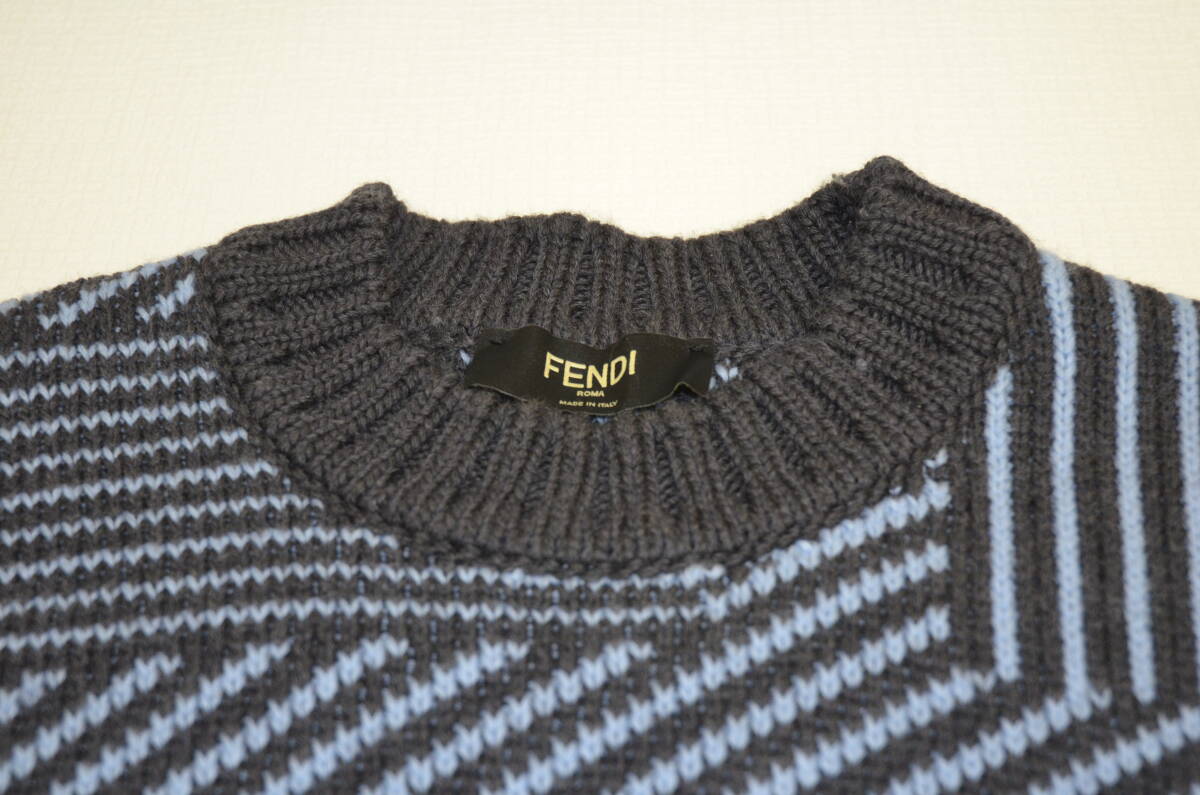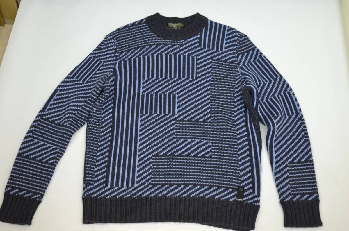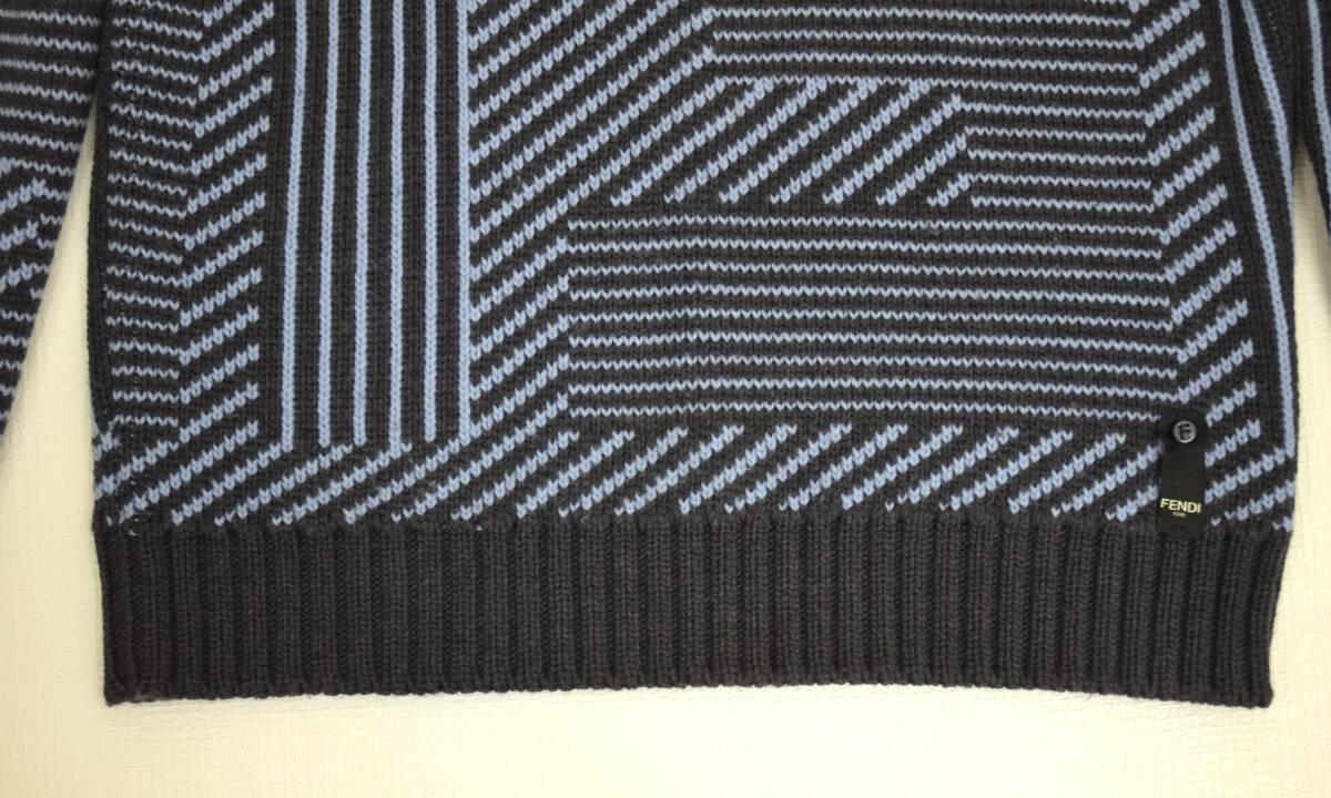 【大黒屋】FENDI フェンディ クルーネック ジャガード ニットセーター FFロゴ シャドー柄 サイズ52 FAE549 APPD