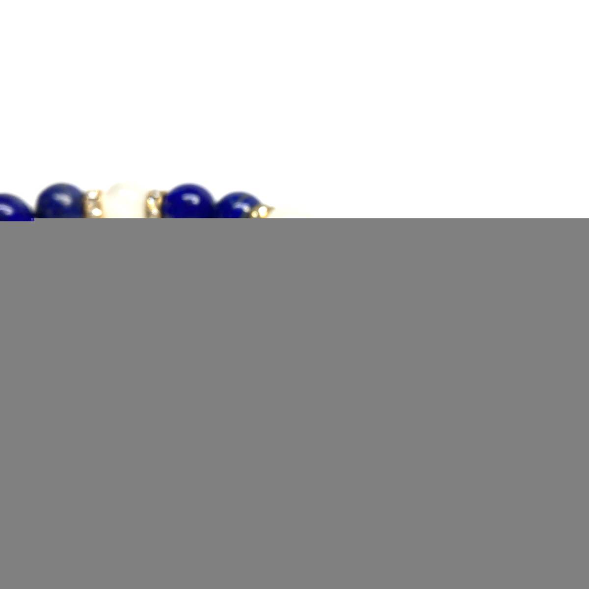 こちらは、ラピスラズリとムーンストーンを組み合わせたパワーストーンブレスレットです。間にはロンデルを挟み高級感あるデザインに仕上げております。石大きさは腕にも馴染みやすいように10mm玉で内径約18cm(伸可能)です。(サイズ変更の場合は取引ナビにてご連絡をお願いします。) 数に限りがございますので気になる方はお早めにどうぞ。