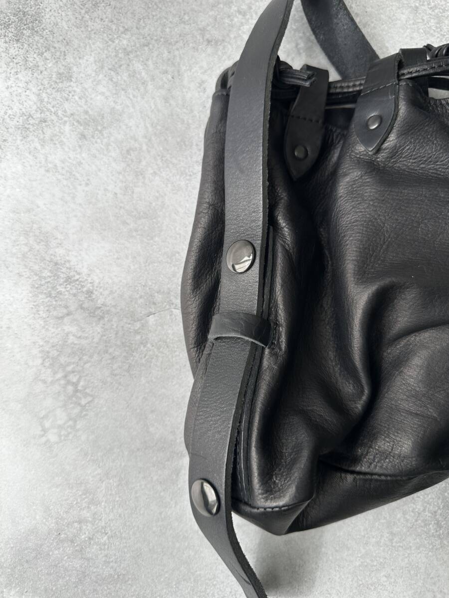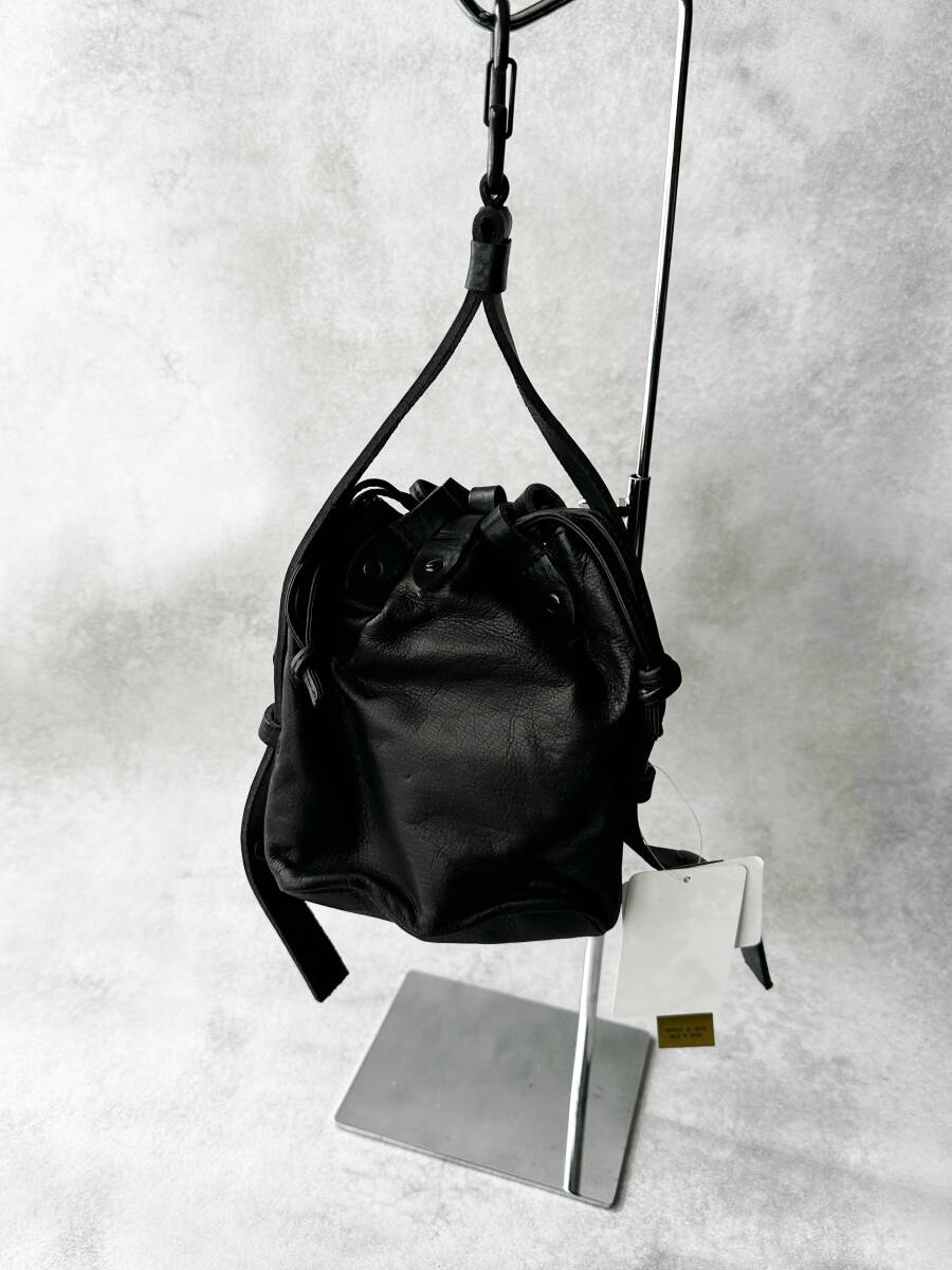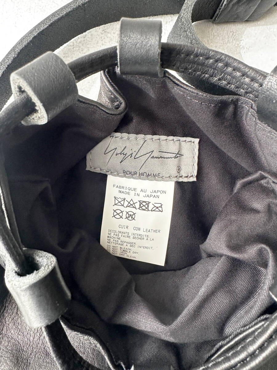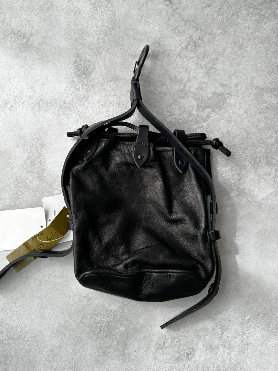 2022年秋冬コレクション(22AW)で展開された、Yohji Yamamoto POUR HOMME のカラビナ付きカウレザー巾着バッグです。