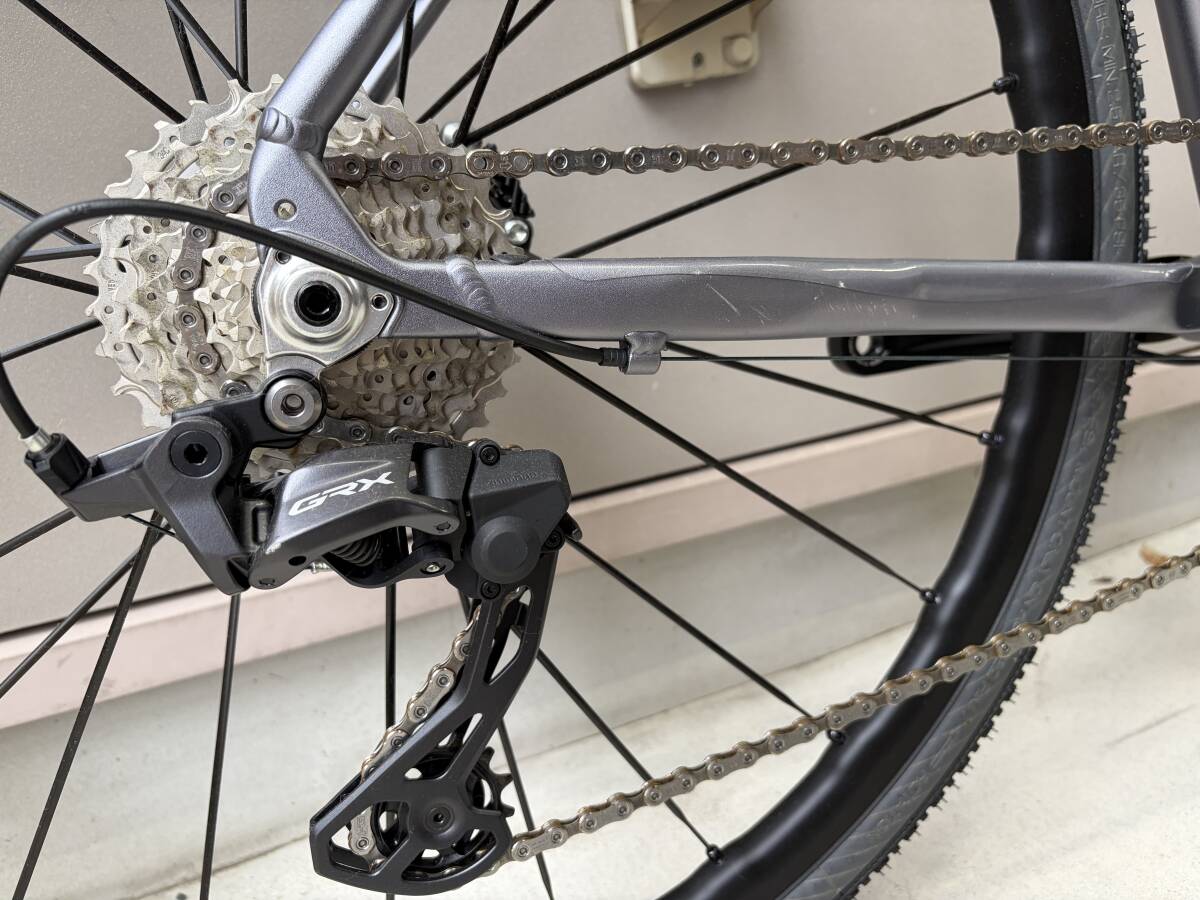 GRX610は荒れたセクションでの確実な変速とブレーキタッチが魅力。
