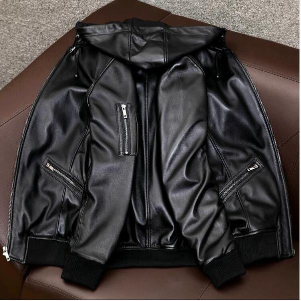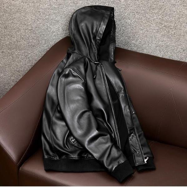 高級感満載! ライダースジャケット 革ジャン・レザージャケット 羊革 メンズジャケット フード付き 革コート