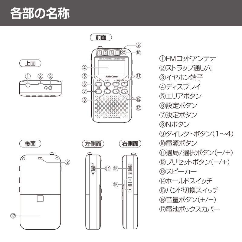 ■ アンテナ:AM…内蔵フェライトバーアンテナ、FM…ロッドアンテナ