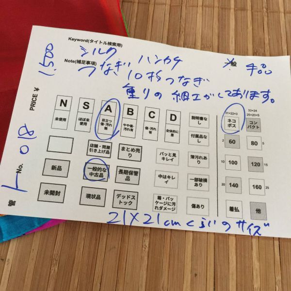 ※画像に「入荷時の検品シート(手書き)』を出来る限り載せるようにしています。参考にしてください。