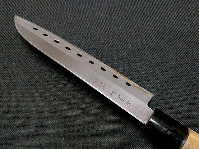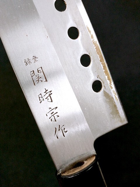 | 3Q売切!税無し☆関時宗作★三徳包丁★万能包丁★穴あき包丁★御料理包丁★約170mm★和包丁★刃物★調理器具★現状★現品限り★1118-7 |