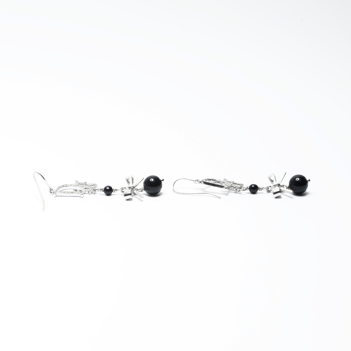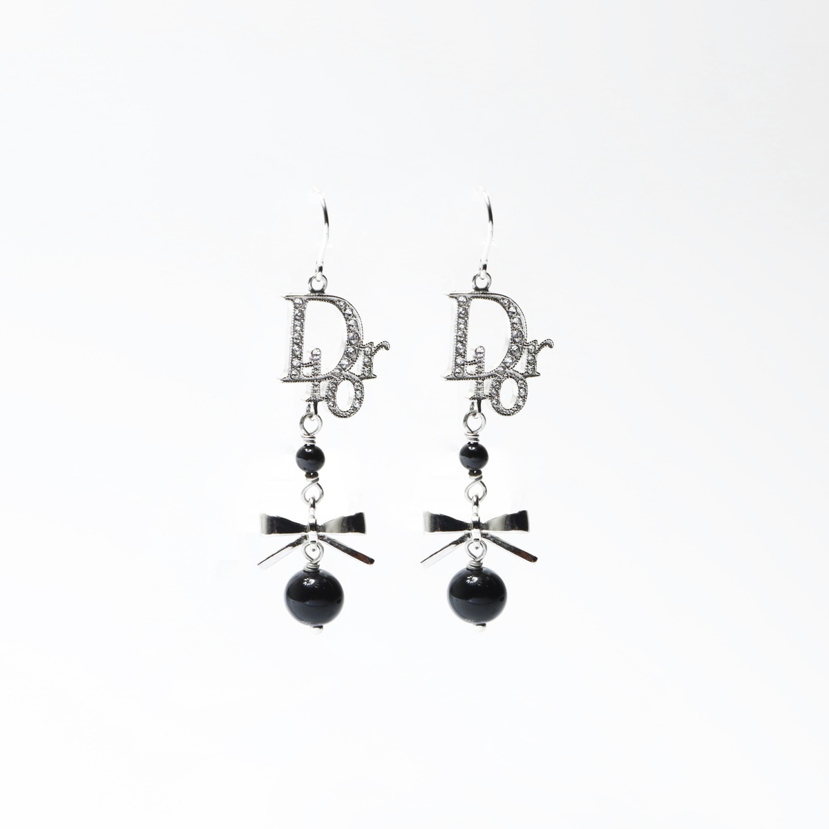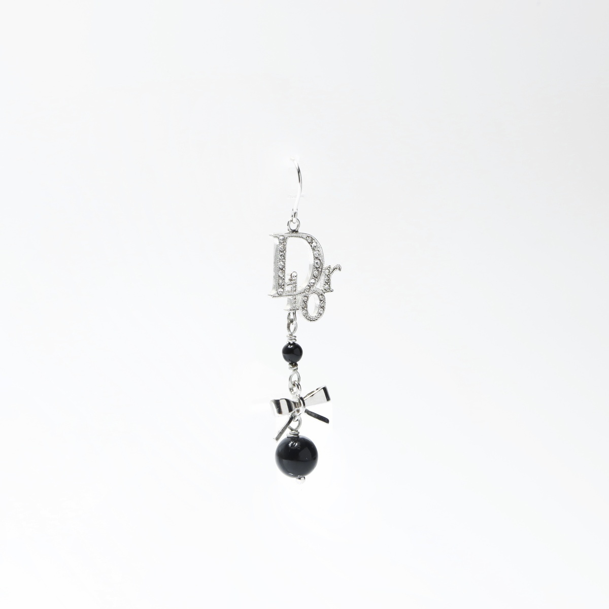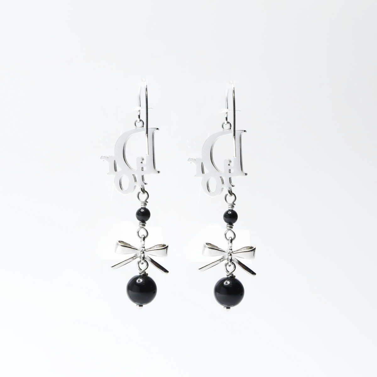 極美品 Christian Dior ロゴ リボン ピアス シルバー