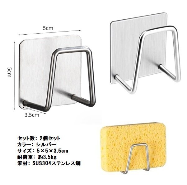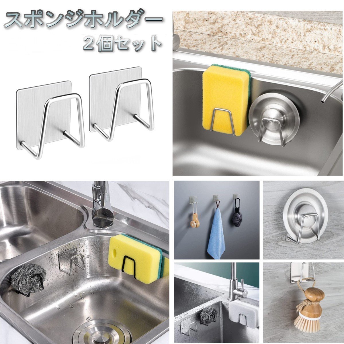 【vaps_7】スポンジホルダー 2個セット シルバー スポンジ置き スポンジラック スポンジ収納 水まわり 送込