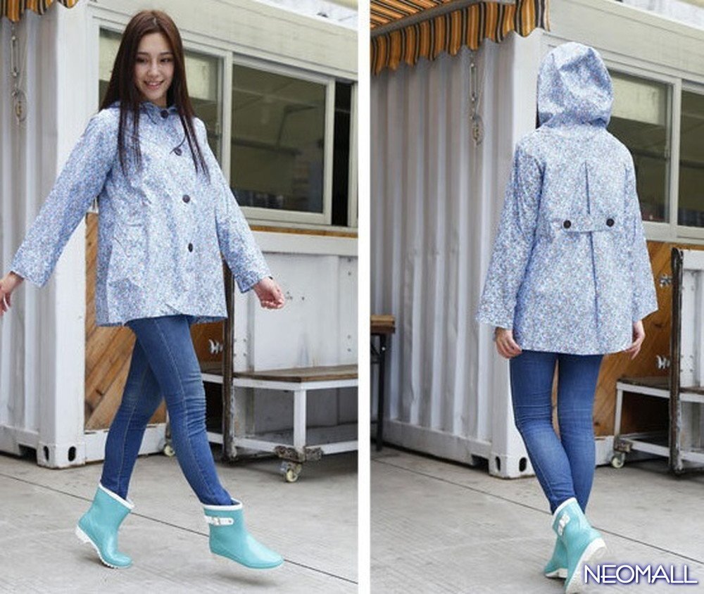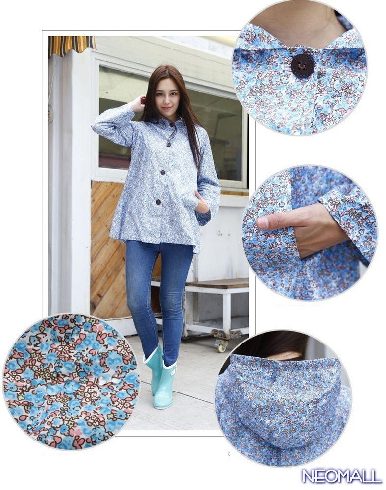 雨対策に!☆【532】レディース レインコート ブルー 花柄 フリーサイズ 梅雨対策 防水 撥水 雨具 雨 雪 ゲリラ豪雨 通勤 通学