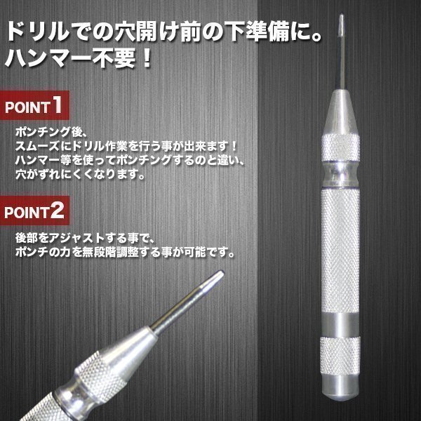 ★ハンマー不要 オート マチック センターポンチ ドリル 下穴あけに ハンドツール エンジニア 電動ドリル ポンチ 下準備 穴あけ アルミ
