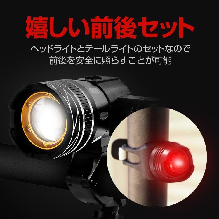 ◆充電式 自転車用LEDライト 前後セット ヘッドライト+テールライト 光量切替対応 高耐久アルミニウム合金 高輝度 取付簡単 生活防水 25.4-31.8mm TOREYK168SET